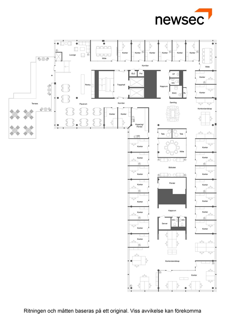 Från köket kliver ni rakt ut på en stor, privat terrass som blir som en unik förlängning av arbetsplatsen. Perfekt för informella möten i friska luften. Kombinationen av ett stort kök och en egen terrass skapar en arbetsmiljö som både höjer trivseln och stärker gemenskapen.