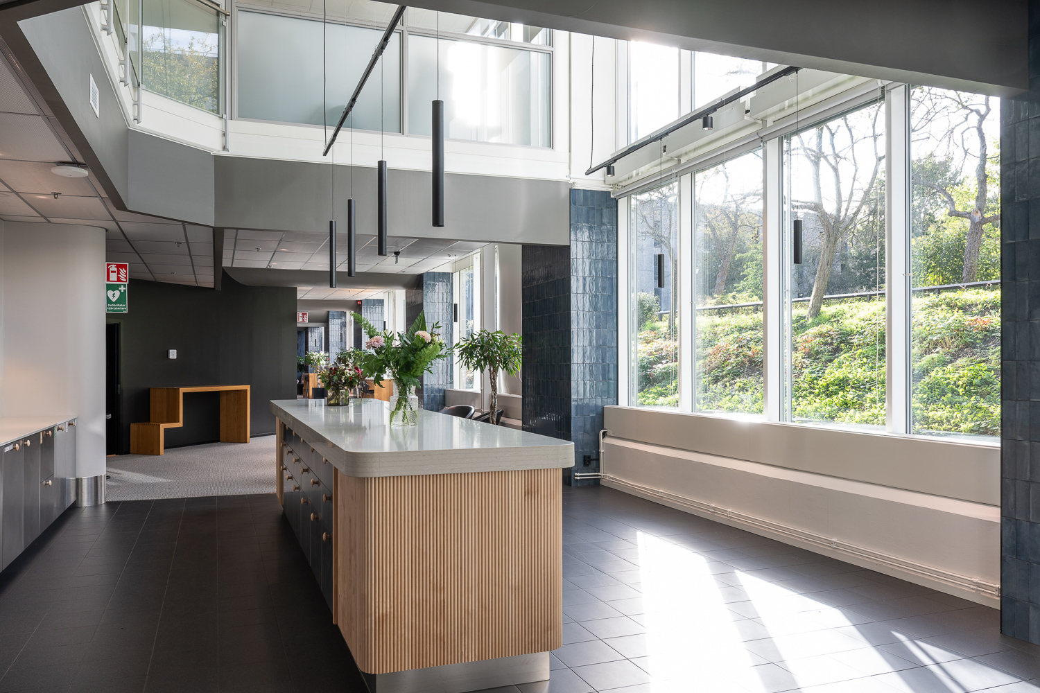 Ett kontor som kombinerar ljus, rymd och grönska – med bekvämligheten av att ha allt du behöver under samma tak.