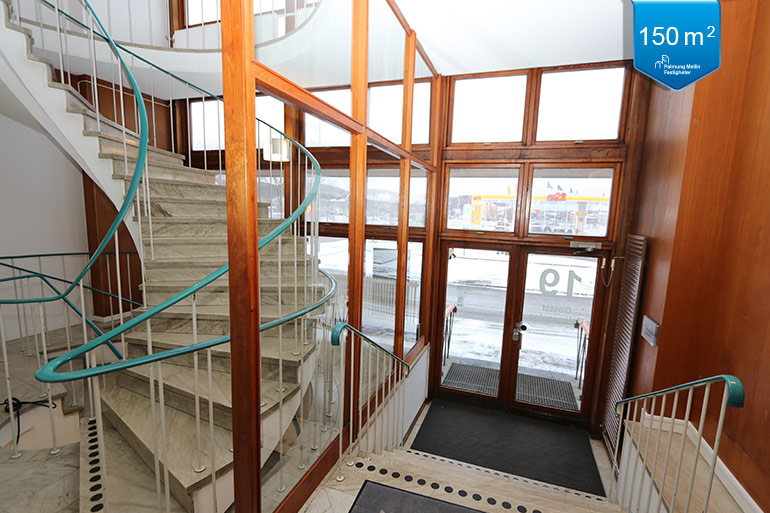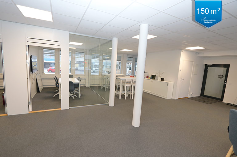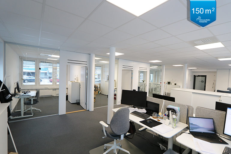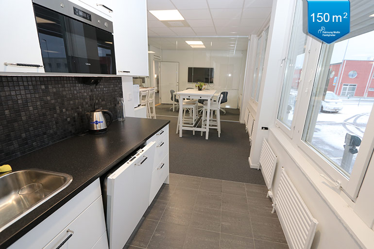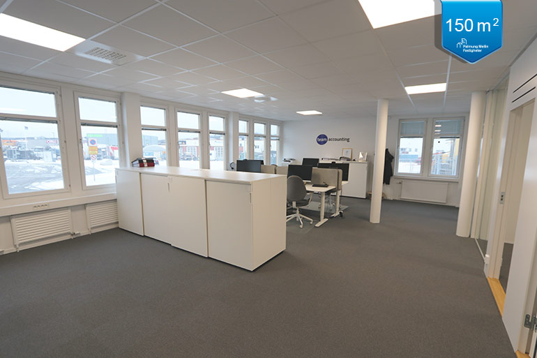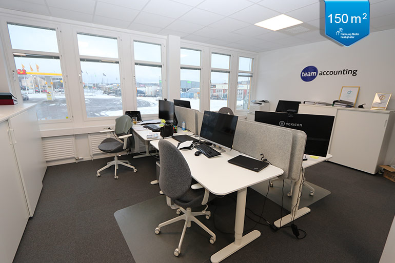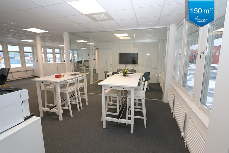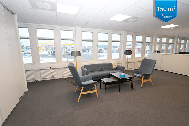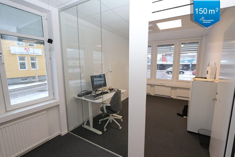 Kontoret ligger en halvtrappa upp i byggnaden och det finns hiss för god tillgänglighet.