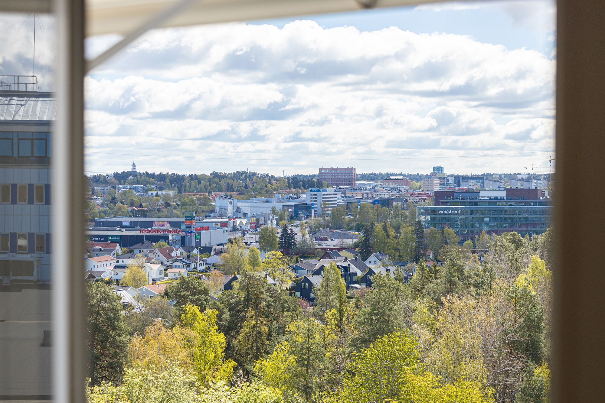 Välkommen till Hammarbacken 6B och denna trevliga kontorslokal med rumsindelad planlösning högt upp i fastigheten.