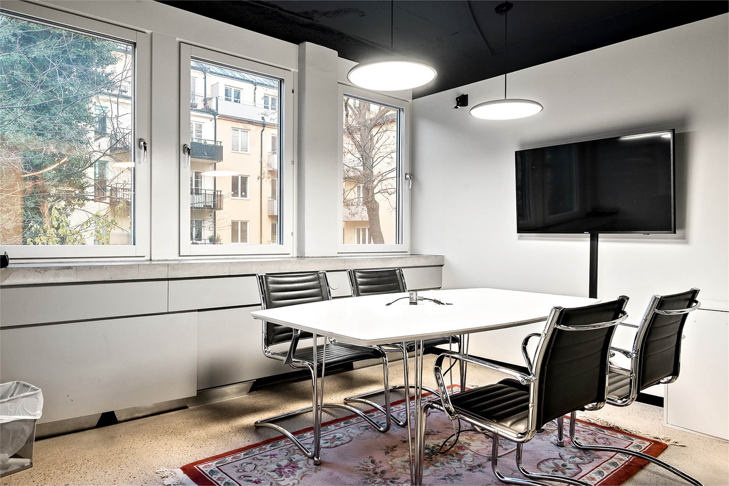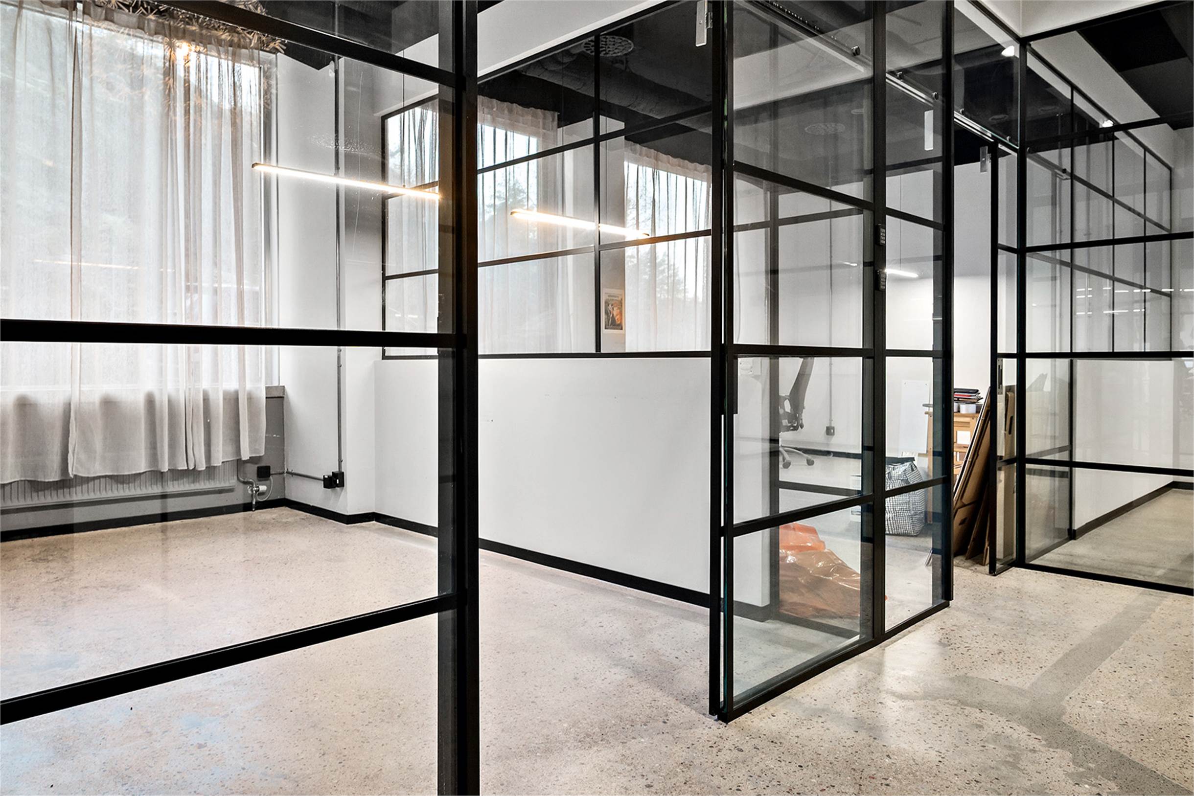 Lokalen är ju väldigt bra anpassad för ett företag som jobbar med ljud eller bildproduktion men skulle passa många andra typer av kontor. De ljudisolerade rummen skulle vara passande till såväl advokatbyrå eller psykoterapi verksamheter.