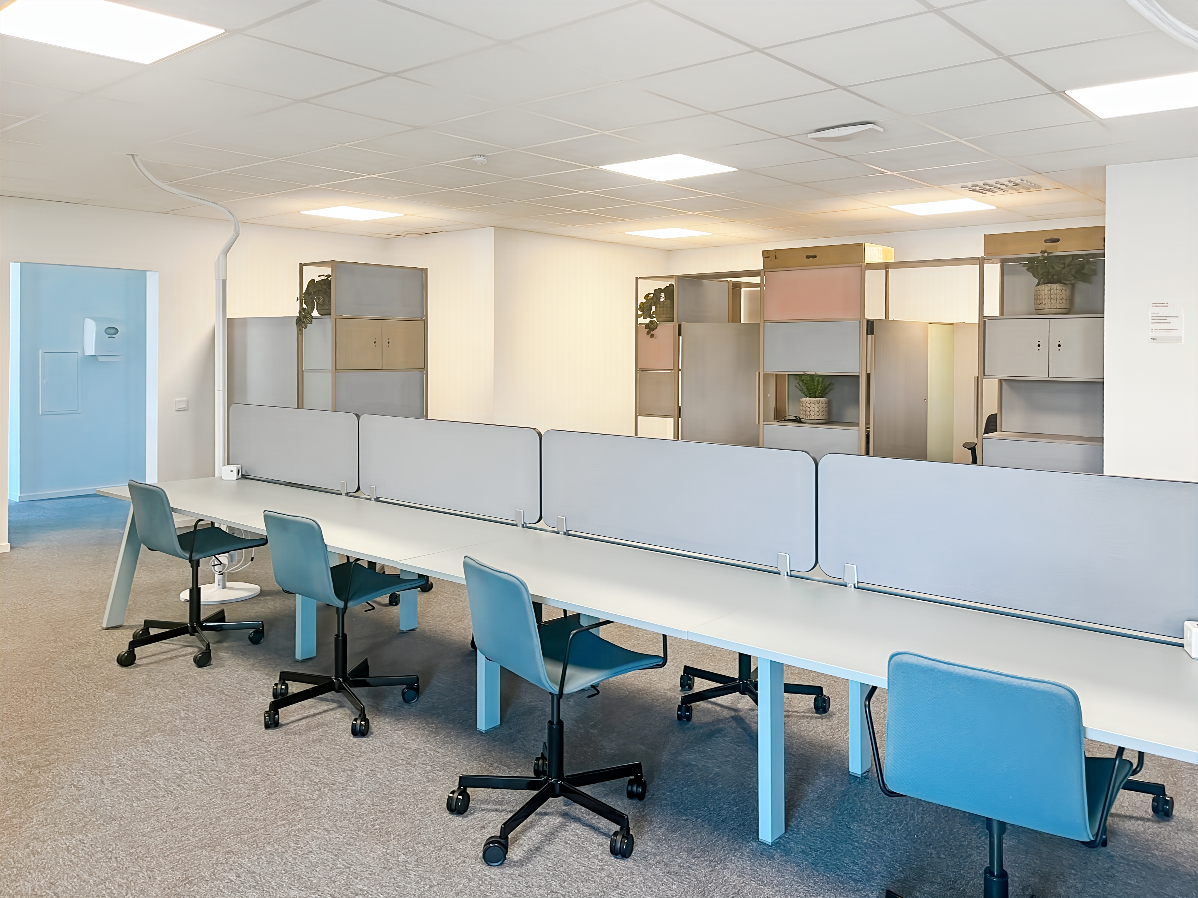 Börja arbeta i en likasinnad community i vårt delade kontorsutrymme. Våra coworkingutrymmen är utformade med samarbete i åtanke och är helt färdigställda med alla extradetaljer. Boka ett dedikerat skrivbord eller kom på drop in och utforska vårt hotdesking-alternativ. Öppna din verksamhet för nya möjligheter.