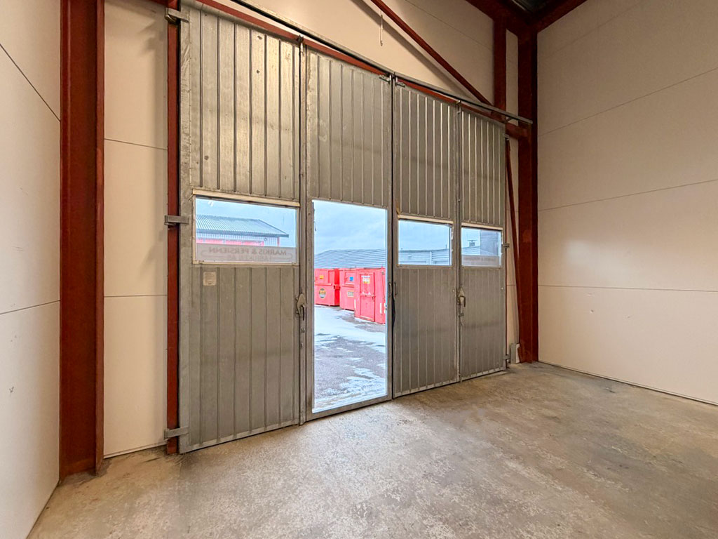 Lagret är utrustat med en stor markport som ger smidig in- och utlastning direkt till lokalen. Ytskikten är robusta och anpassade för lagerändamål.