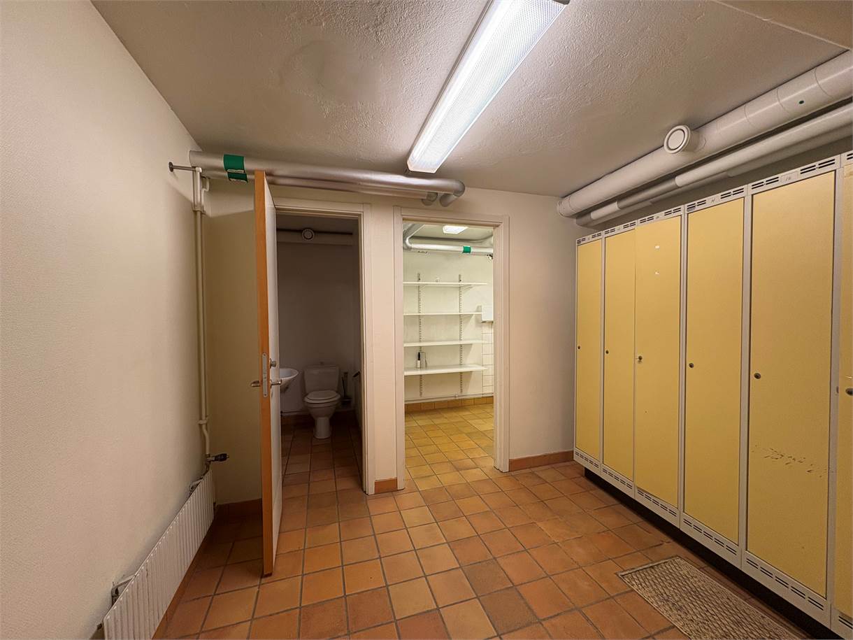 Lokalen har egen entré från trapphus med hiss direkt ned till källarplan och är utrustad med flera praktiska faciliteter såsom: