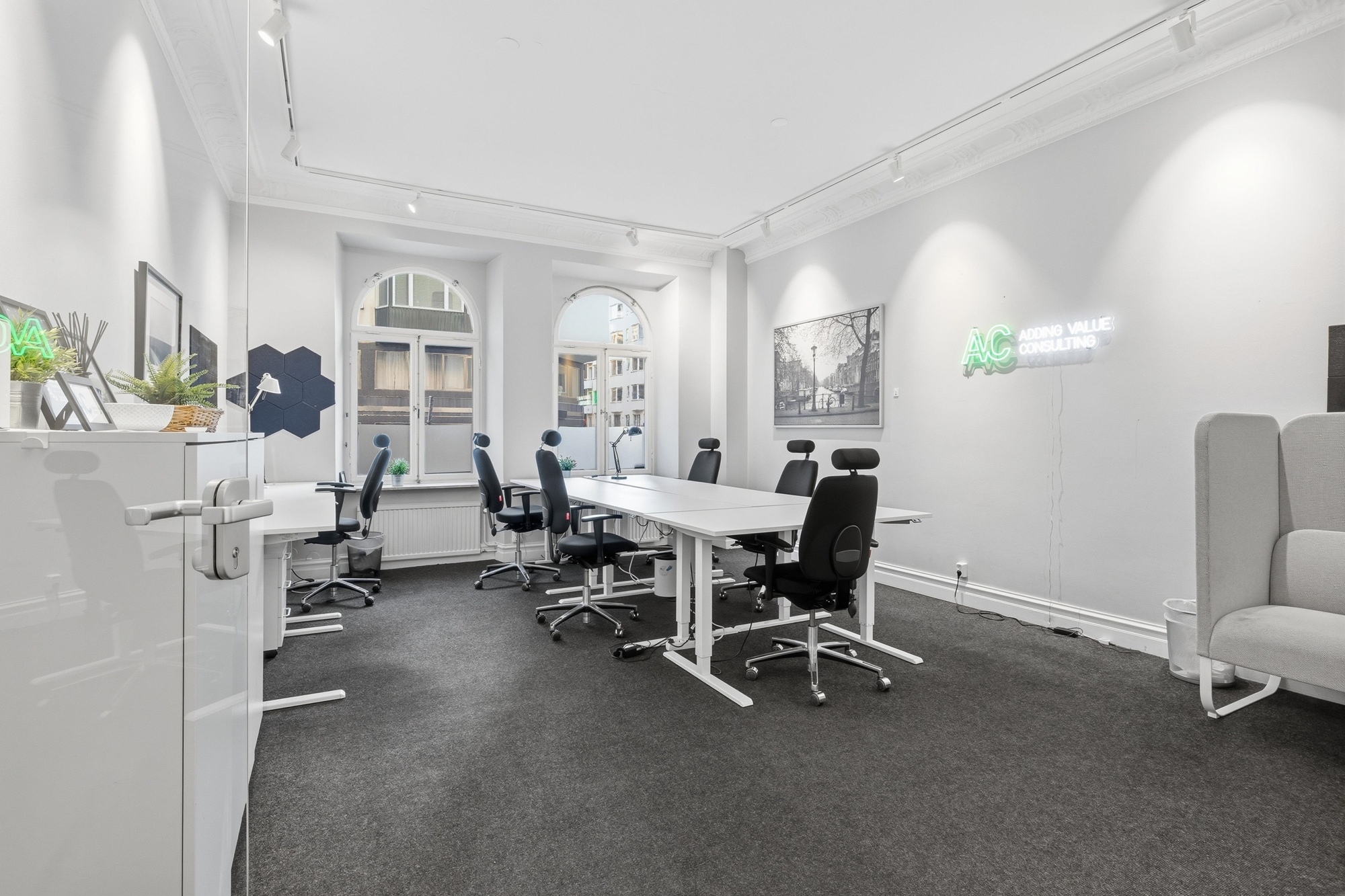 Varmt välkomna till Kommendörsgatan 37 i hjärtat av Östermalm! Nu finns möjlighet att etablera verksamhet i en mycket attraktiv hörnlokal i korsningen Kommendörsgatan/Grevgatan. Lokalen har två st. egna entréer direkt från gatan (varav en i hörnet på Kommendörsgatan/Grevgatan, samt en från Grevgatan). Stora fina fönsterpartier vilka ger ett generöst ljusinsläpp och bra exponering mot gatan. Den främre delen av lokalen erbjuder en representativ och karaktärsfull miljö med välvda fönster och högt i tak - perfekt för showroom, studio, mottagning eller liknande verksamhet. Hörnläget skapar god synlighet och en inbjudande entré för både kunder och besökare. Lokalen har även möjlighet till en separat personalentré via trapphuset på Kommendörsgatan. Det kan även finnas möjlighet att dela upp lokalen i två separata delar (vilket just nu utreds), vilket öppnar för flera användningsområden och för de som önskar en mindre yta. I den inre delen av lokalen finns en mer modern kontorsdel med textilmatta, samt flera inglasade rum; perfekta som samtals/mötesrum. Till lokalen hör också en källarvåning med b.la ett pentry, WC med dusch samt förvaringsmöjligheter, eller kanske yta för pingisturneringarna på kontoret? Lokalen är i dagsläget omomsad och passar således även utmärkt för bolag inom finans. Varmt välkomna att kontakta oss för mer information och/eller en personlig visning!