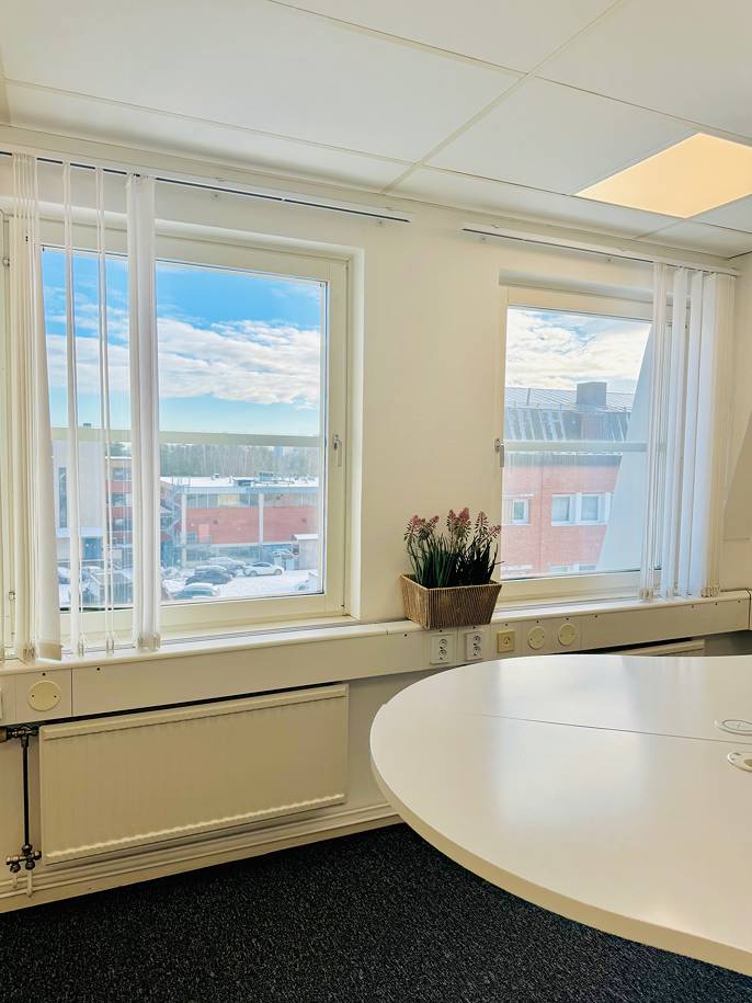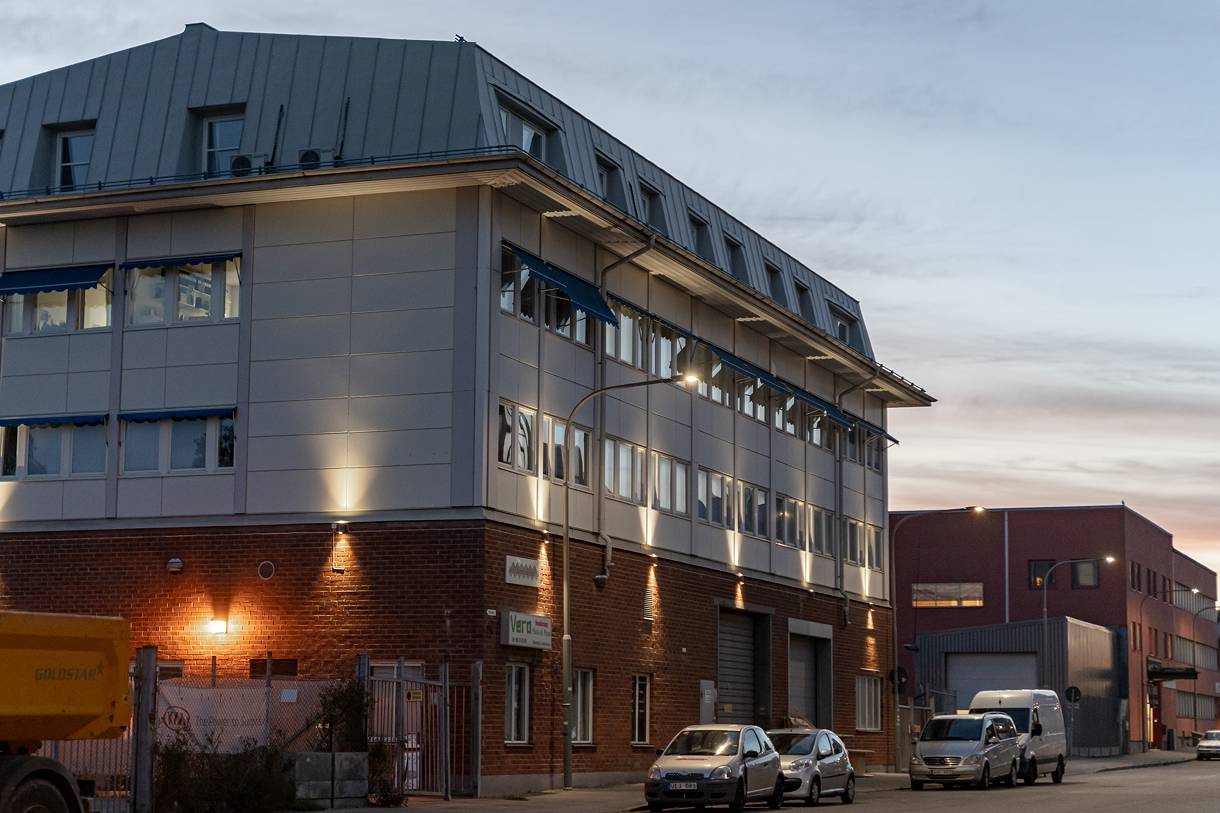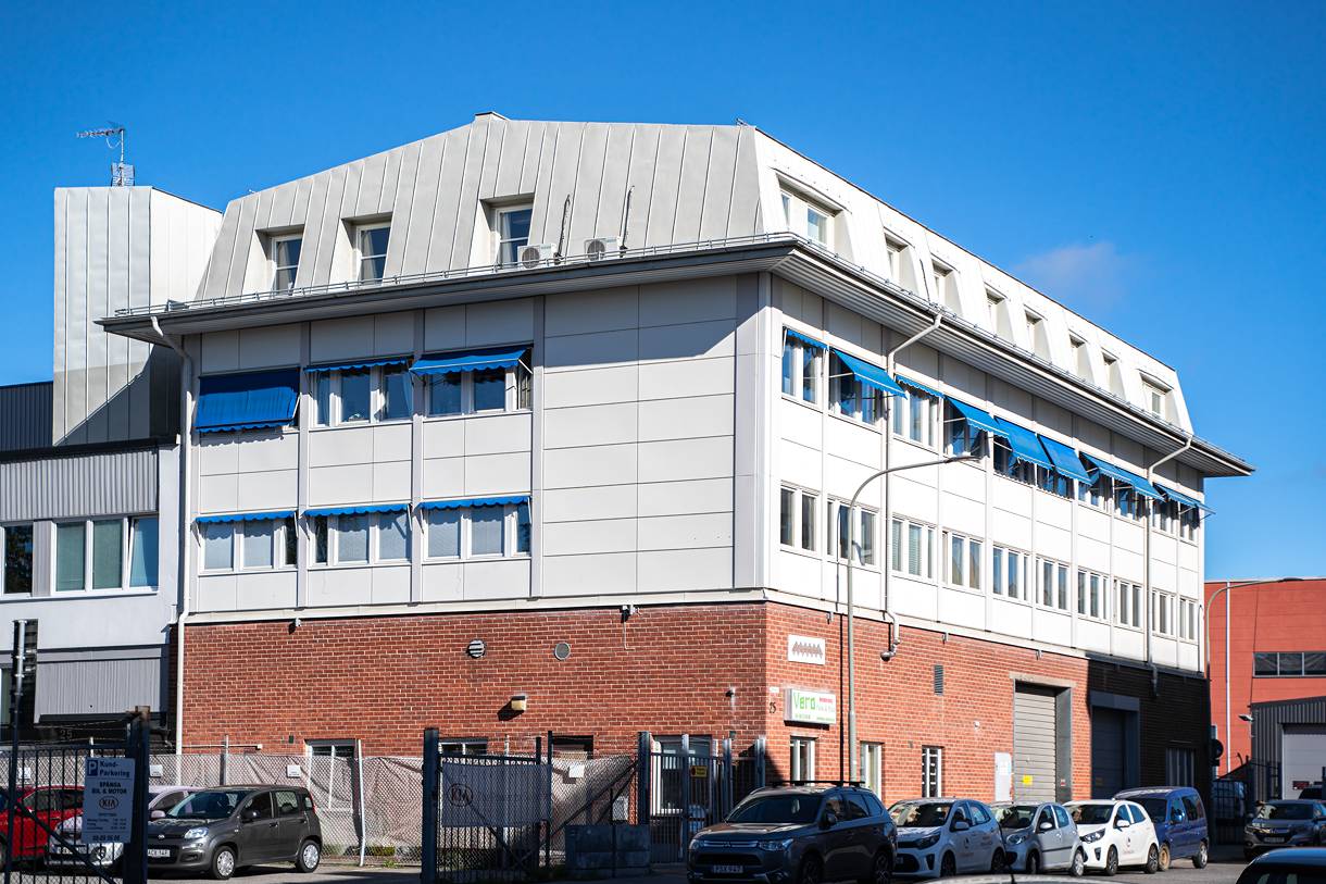 Lokalen ligger högst upp i huset mot en bred genomfartsgata i Vinsta Företagspark.