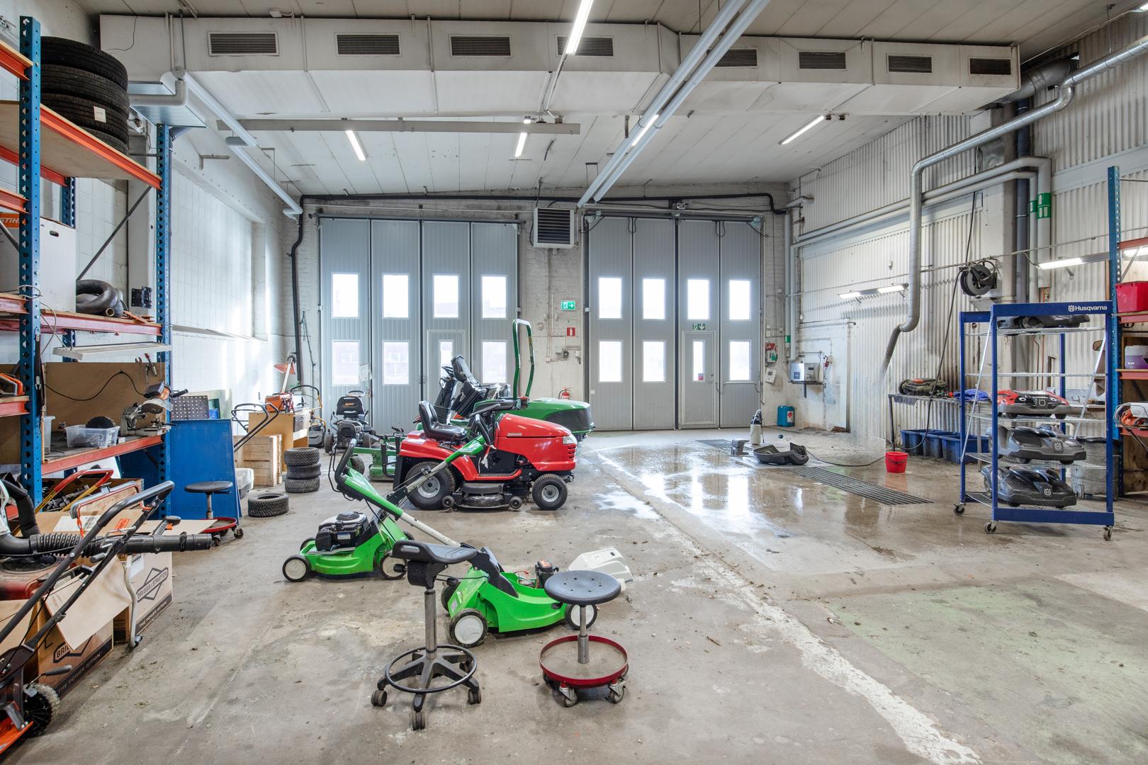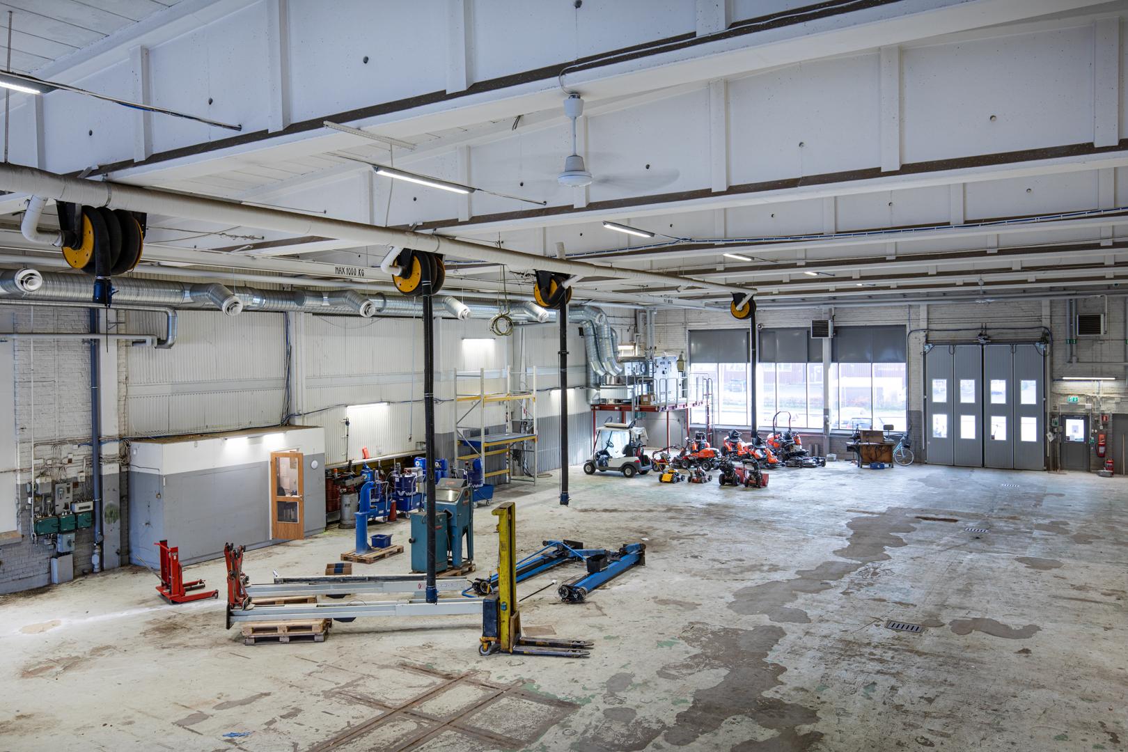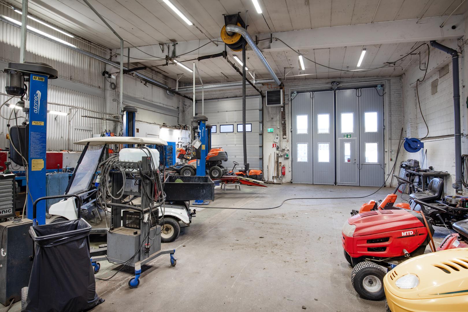 Lokalen är utrustad med oljeavskiljare och ledningar för tryckluft är fördraget.