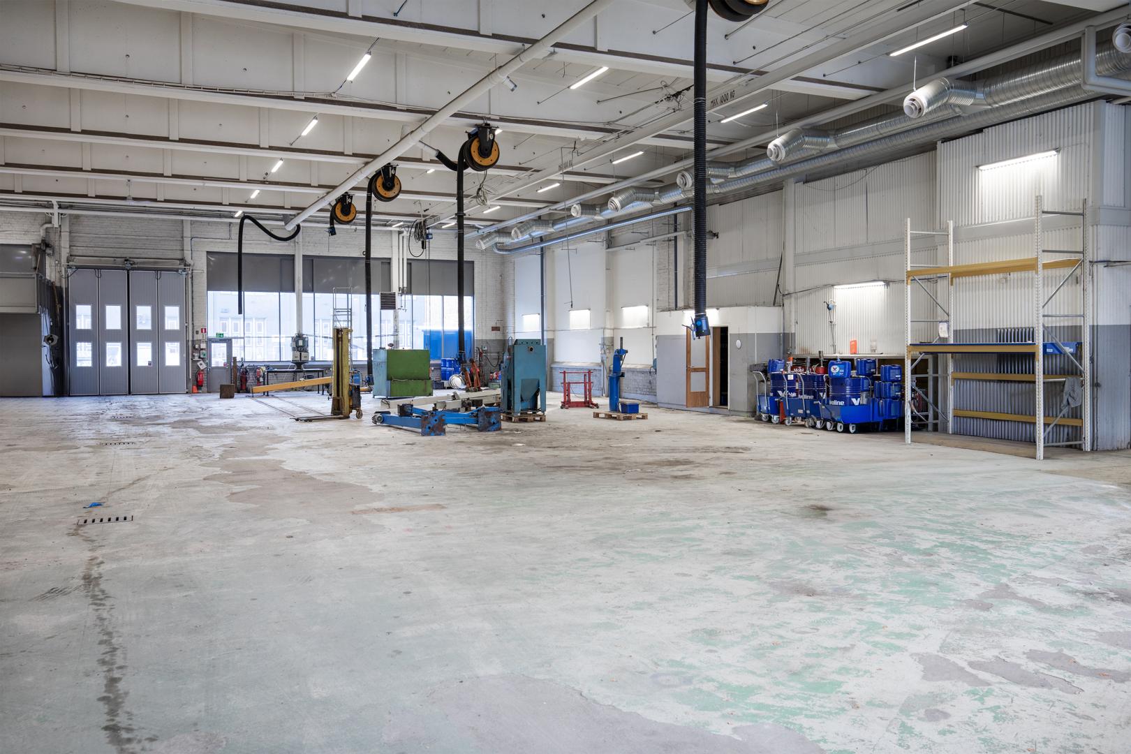 Lokalen erbjuder generöst ljusinsläpp och hög takhöjd som skapar en ljus och rymlig arbetsmiljö. Med stora lastportar och genomkörningsmöjligheter underlättas god hantering av gods och materialflöden.