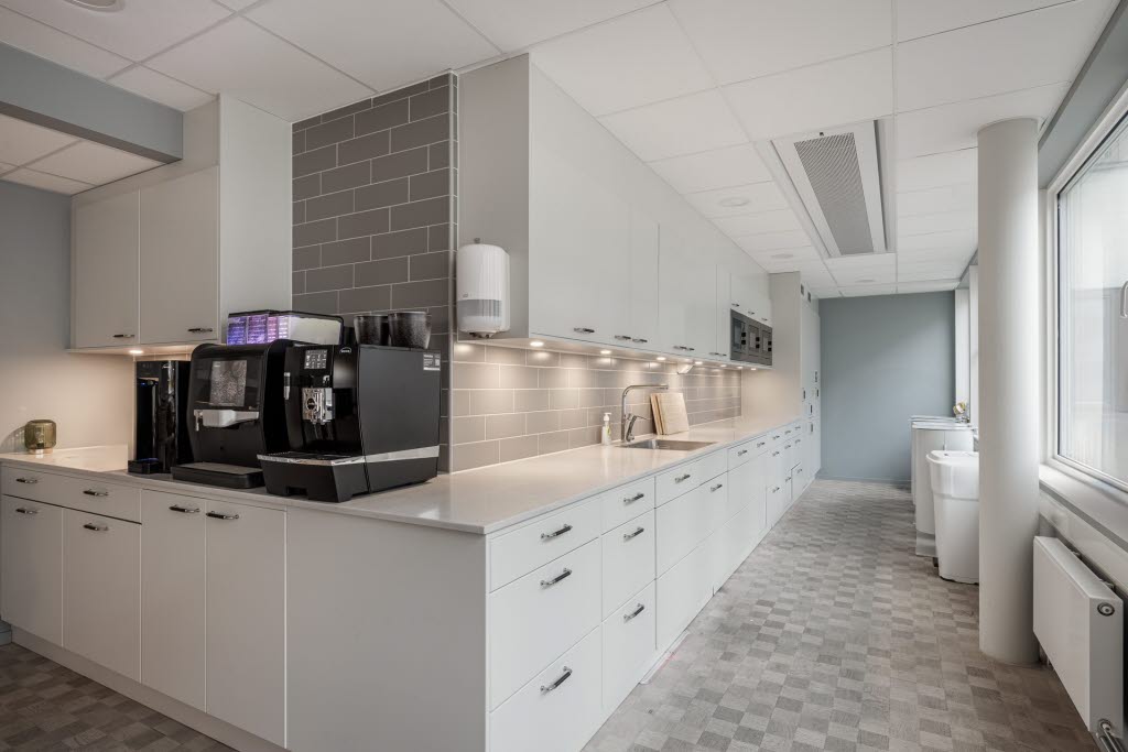 Kontoret inrymmer både öppna kontorslandskap och flera mötes- och konferensrum i varierande storlek. Här finns modern teknik, ljusa och luftiga ytor, hög kvalitet och standard i materialval. Här får ni en arbetsplats med utmärkta möjligheter att skapa en inspirerande kontorsmiljö.