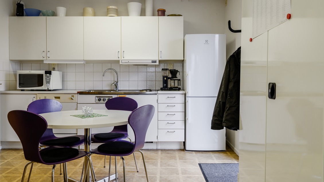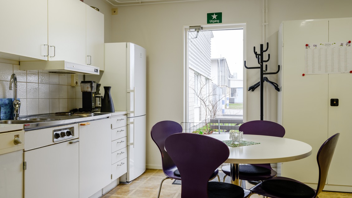 Här erbjuds kontorsrum, fräscht pentry med plats matmöblemang och goda förvaringsmöjligheter på bottenplan. Det finns även en altandörr som ger en hemtrevlig känsla att kunna öppna i pentrydelen.