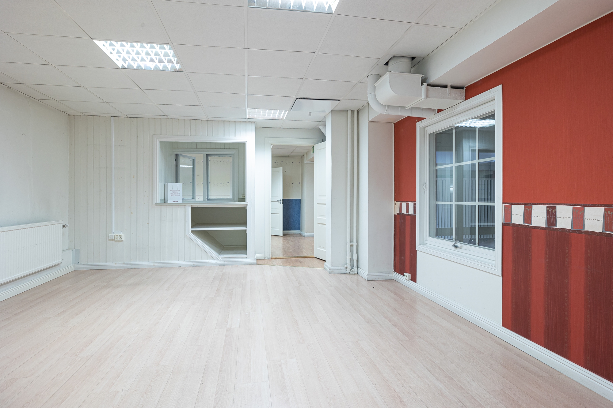 Lokalen har en mixad planlösning med bland annat några större öppna ytor, samt rum (kontors och mötesrum) i olika storlekar. Här finns även en del lager/förrådsytor. 2 st taklanterniner vilka genererar fint dagsljus in till del av lokalen.