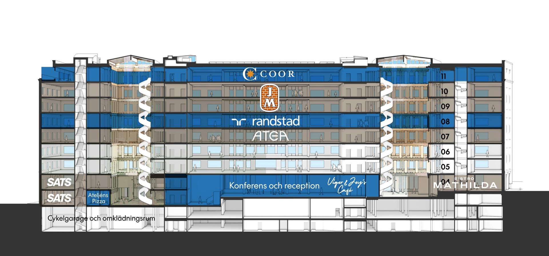 Ta plats tillsammans med Atea, JM, Coor, Randstad och SATS i en attraktiv stadsdel för såväl kontorshyresgäster som boende. Allt vi skapar här görs utifrån det mänskliga perspektivet - trivsel, rätt känsla och förutsättningar.