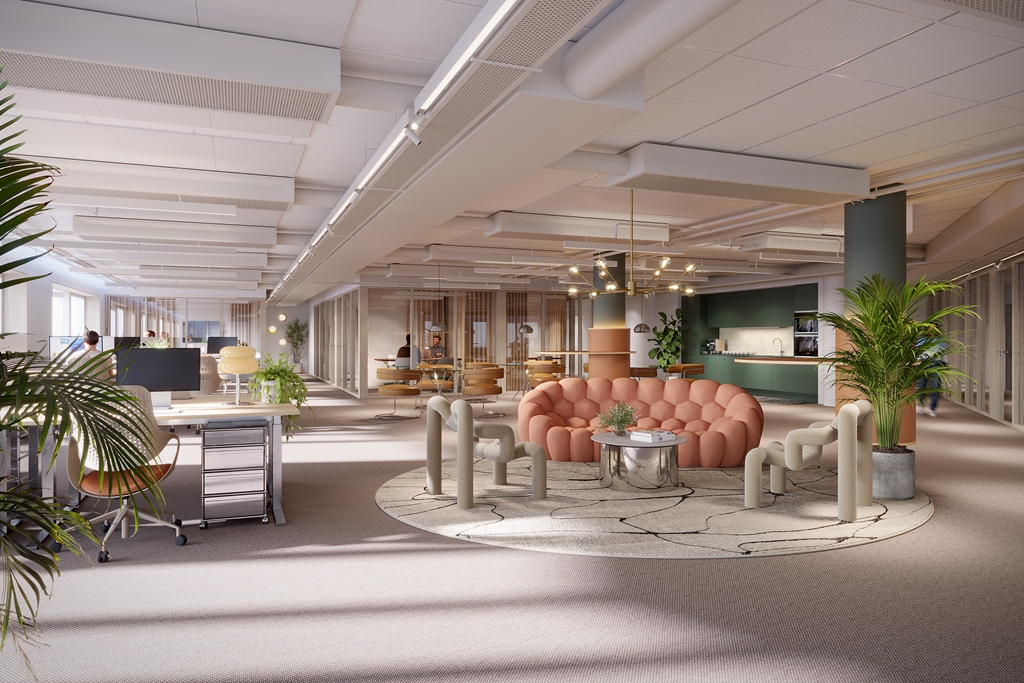 De nya arbetsplatserna präglas av en välkomnande miljö och toppmodern standard. Ljusinsläpp från atriumgården ger en känsla av rymd, med stora valmöjligheter i planlösningar och inredning. Inflyttning våren 2027.