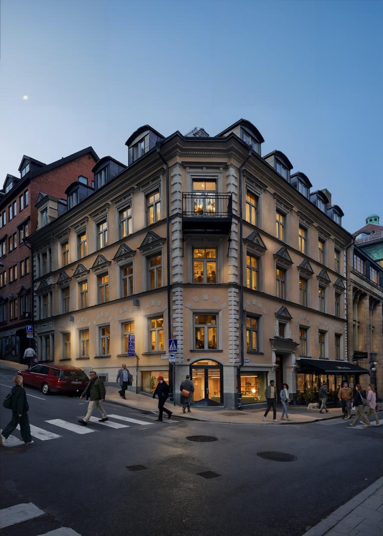 Här erbjuds en representativ huvudentré i korsningen Norrlandsgatan/Lästmakargatan. Genom varsam renovering har tidstypiska kvaliteter från förra sekelskiftet bevarats och återskapats, samtidigt som moderna och flexibla lösningar har integrerats för att möta dagens krav på funktion och estetik.