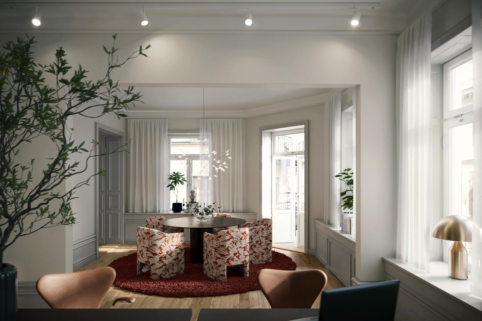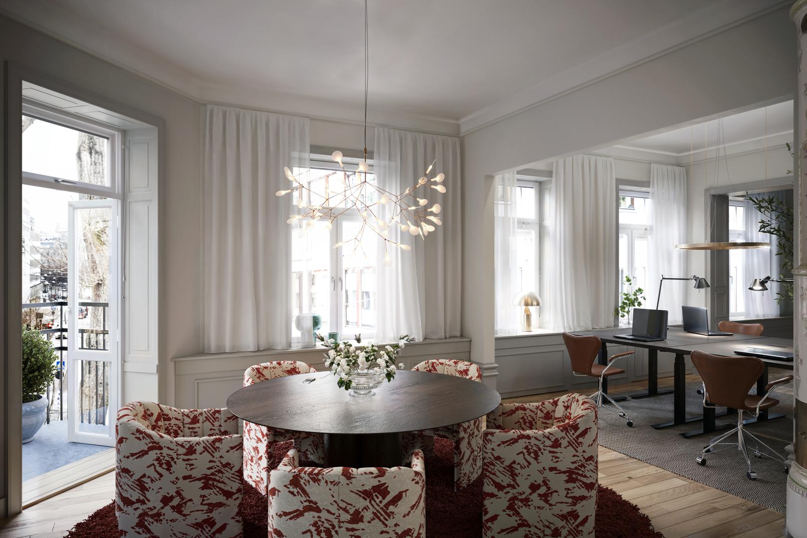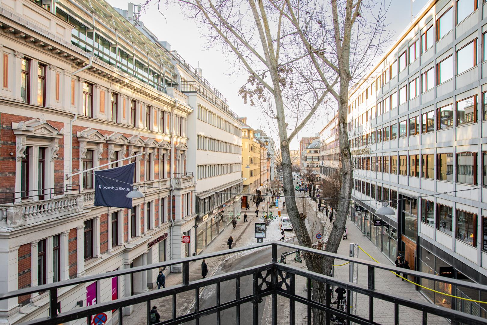 Kungsgatan ligger runt hörnet och Stureplan är ett mindre stenkast bort, perfekt för snabba möten och affärsluncher. Runt kvarteren finns restauranger, caféer och butiker som ger energi hela dagen. Om du vill ha en lugn stund väntar Humlegårdens grönska på kort promenad. Dessutom har du Djurgårdens grönska och havsluft inom räckhåll – perfekt för en löprunda eller promenad.
