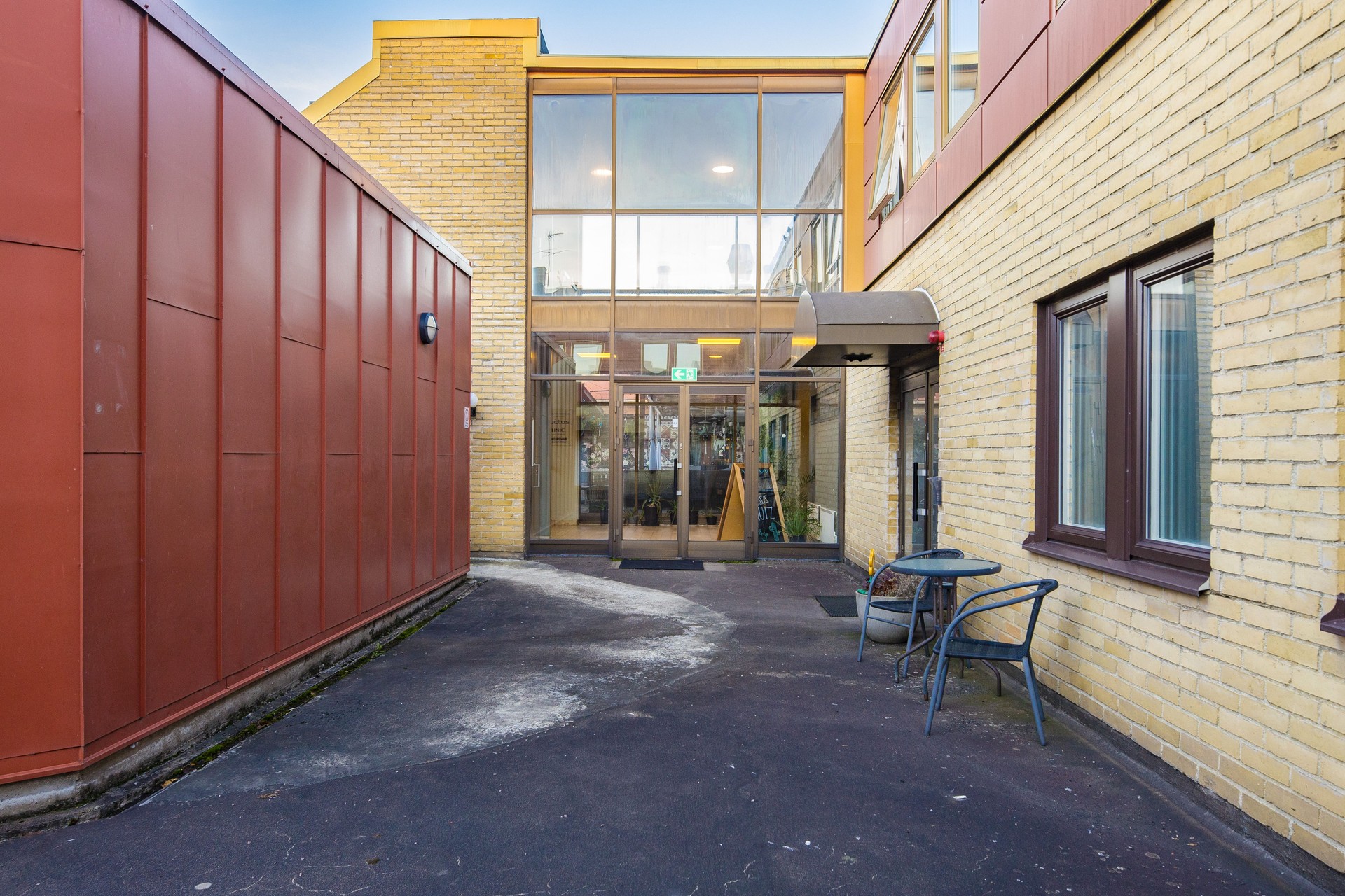 Entrén vetter mot torget och och är lättillgängligt för både kunder och besökare. En trappa upp finns dessutom en trevlig innergård som får nyttjas – en lugn oas mitt i stadskärnan, perfekt för pauser eller kundmöten i avskild miljö.