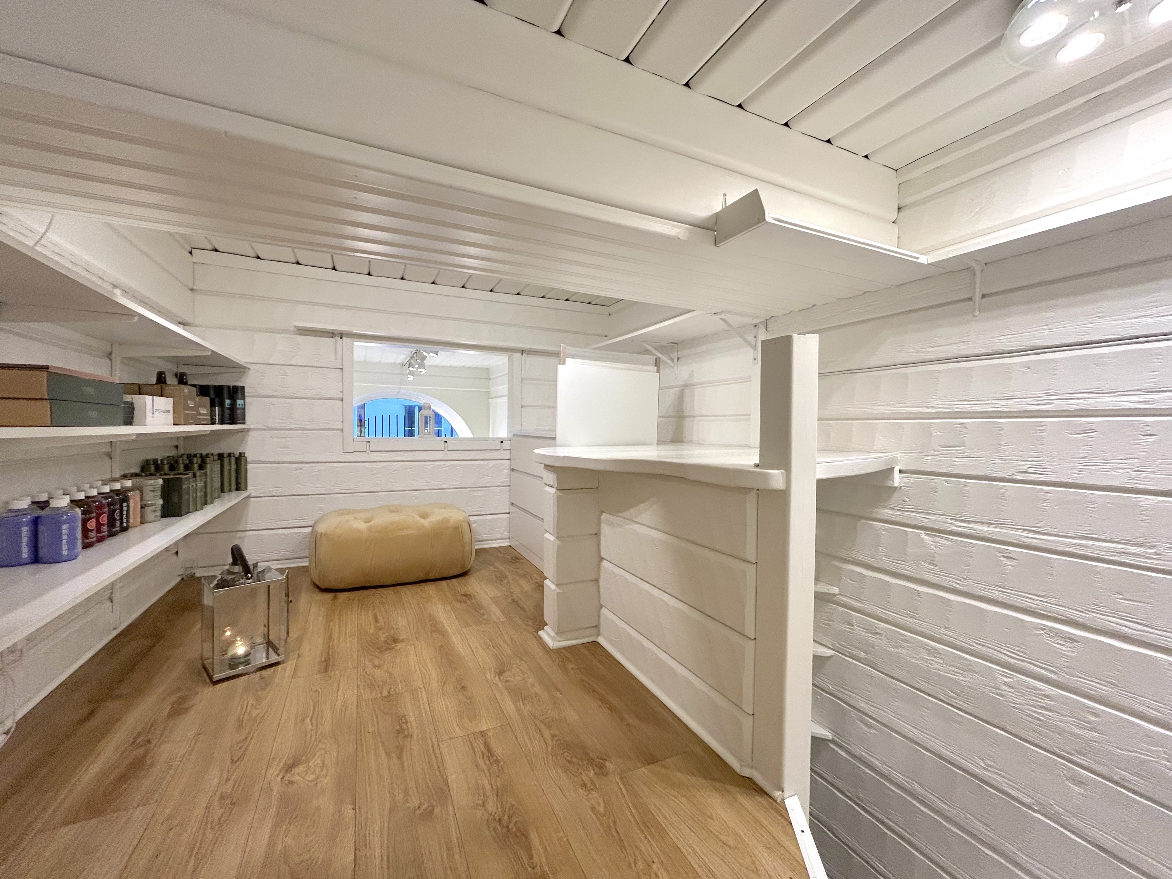 Det stora skyltfönstret och glasdörren ger god exponering mot gatan och släpper in ett fint ljus som gör rummet både större och mer inbjudande. Den generösa takhöjden förstärker den luftiga känslan ytterligare. Längst in i lokalen finns ett pentry samt wc med dusch, och ovanför detta ett loft som fungerar bra som kontor eller förvaring. Taket är inte särskilt högt där uppe, men ytan går utmärkt att använda och ger ett bra tillskott till lokalen.