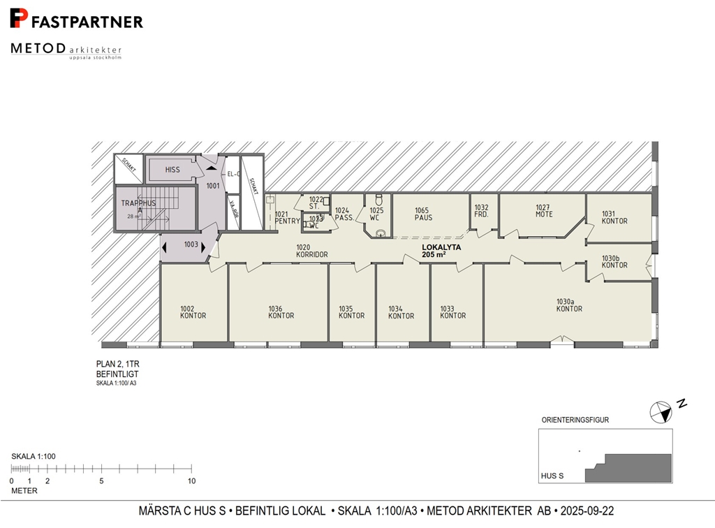 Fin lokal belägen 1 trappa upp. Lokalen består av ett flertal enskilda rum samt större konferensrum. Heltäckande matta på golvet ger ombonad känsla. Ljusa väggar och stora fönster bidrar till en bra arbetsmiljö. Märsta Centrum präglas av en kvarterskänsla med restauranger, café och butiker. Fin utsikt över gångstråk sätter lite mjuk och nostalgiskt avtryck på kontorets karaktär.