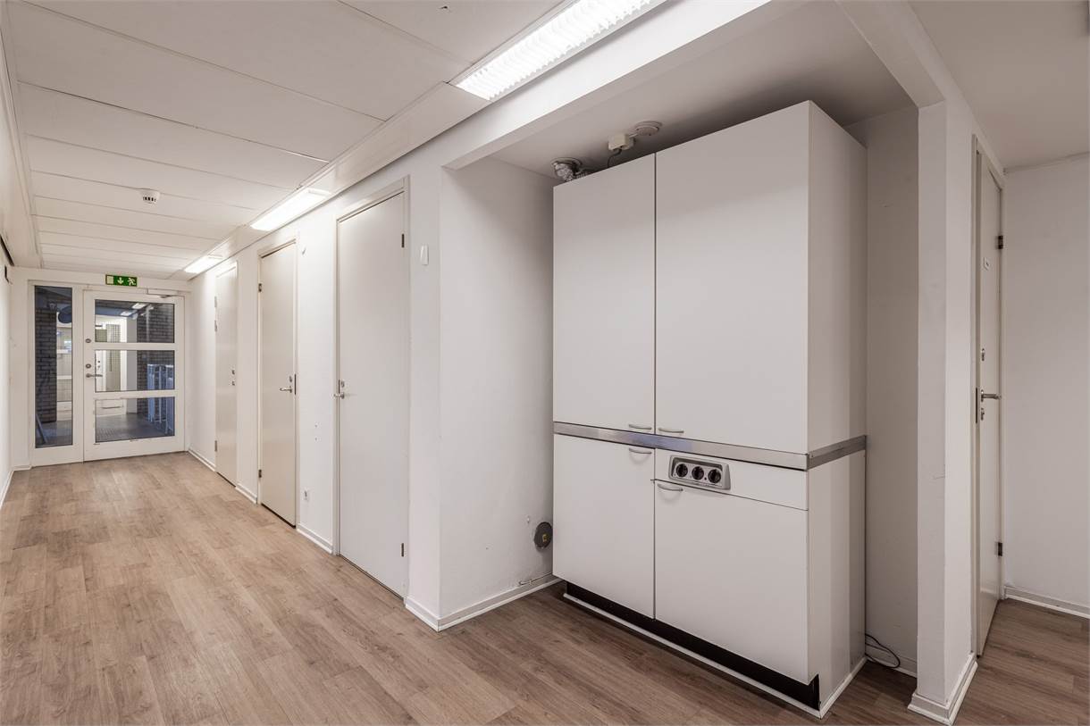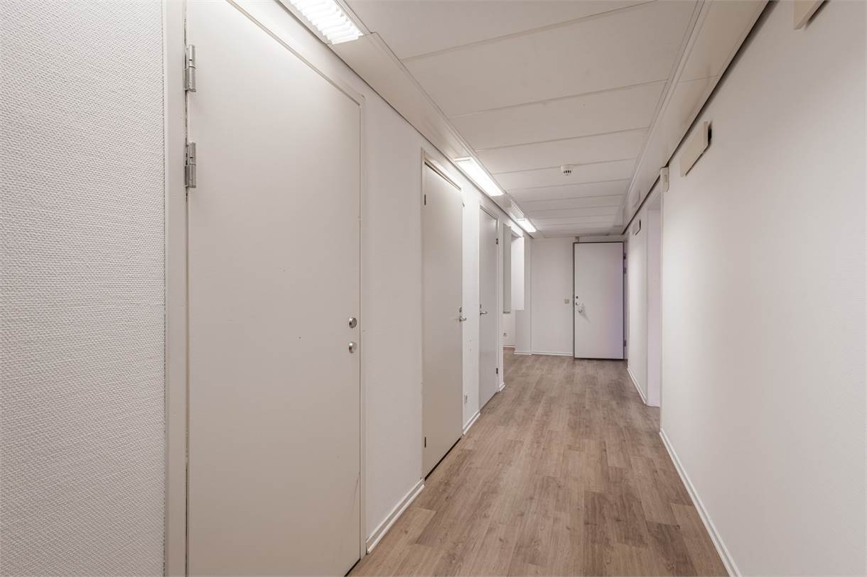 Planlösningen erbjuder två kontorsrum, samt pentry, dusch och WC, vilket gör lokalen komplett för daglig verksamhet.