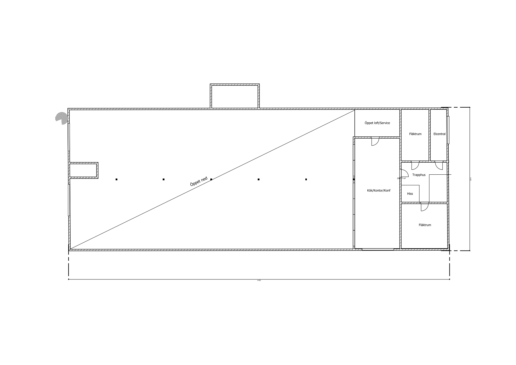 Markplan omfattar ca 800 kvm lager samt ett entresol om ca 150 kvm. Övre plan om ca 800 kvm nås via trappa och varuhiss och kan användas för lager eller kontor.