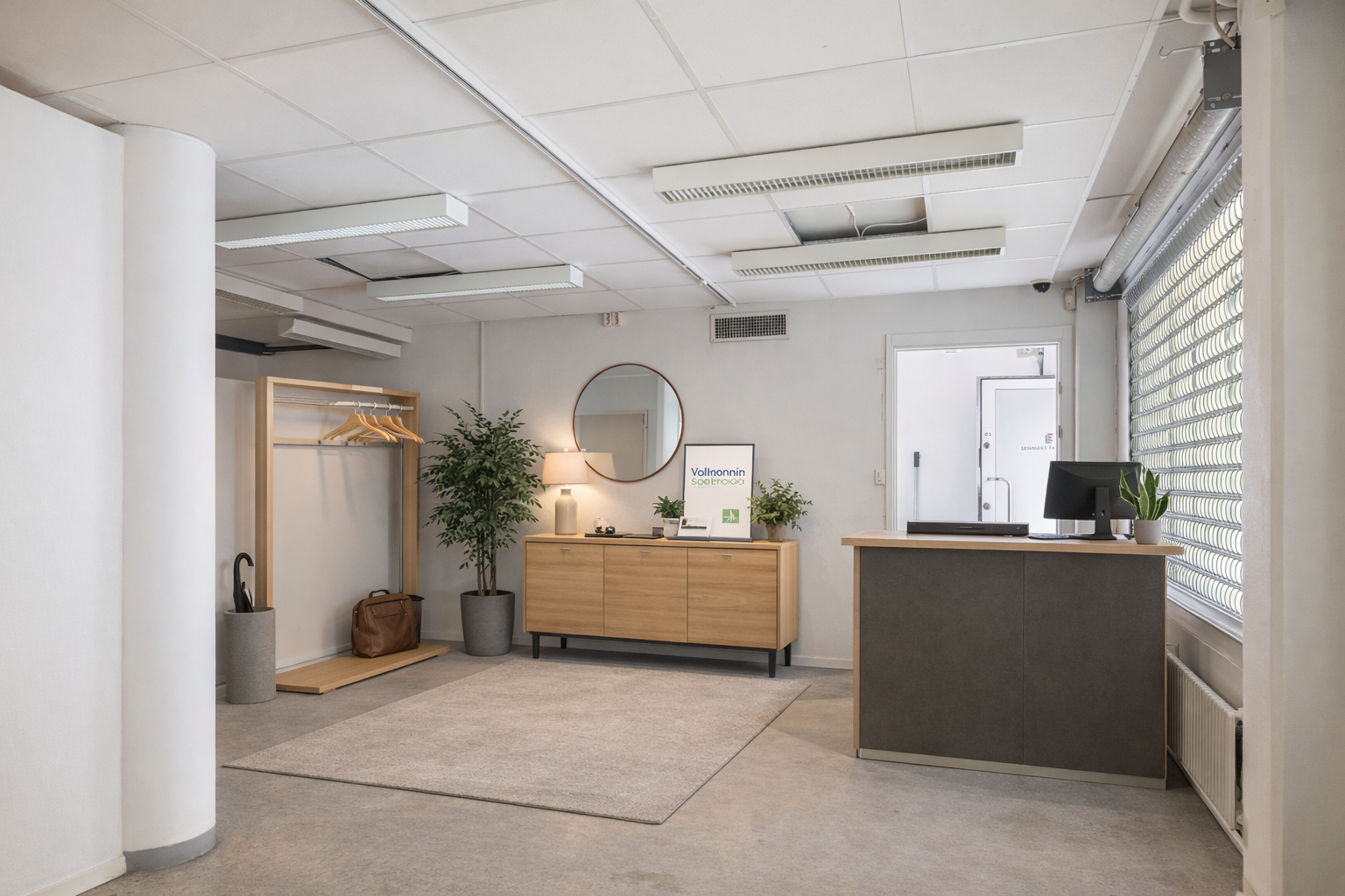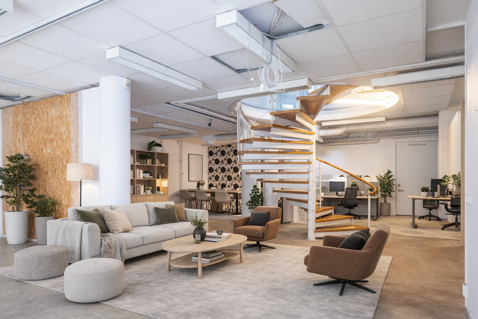 Möblerade bilder är exempelbilder på hur kontoret skulle kunna inredas.