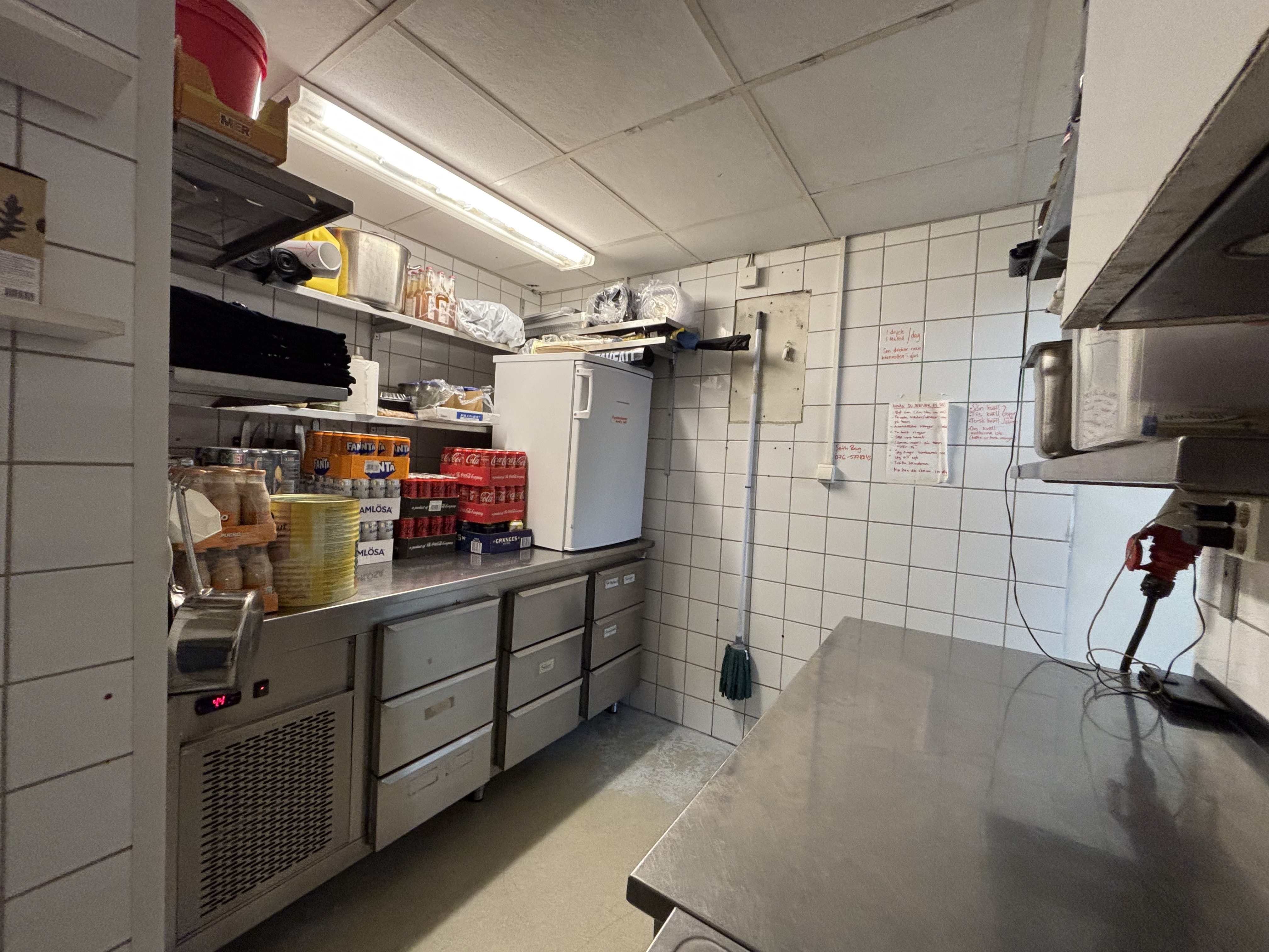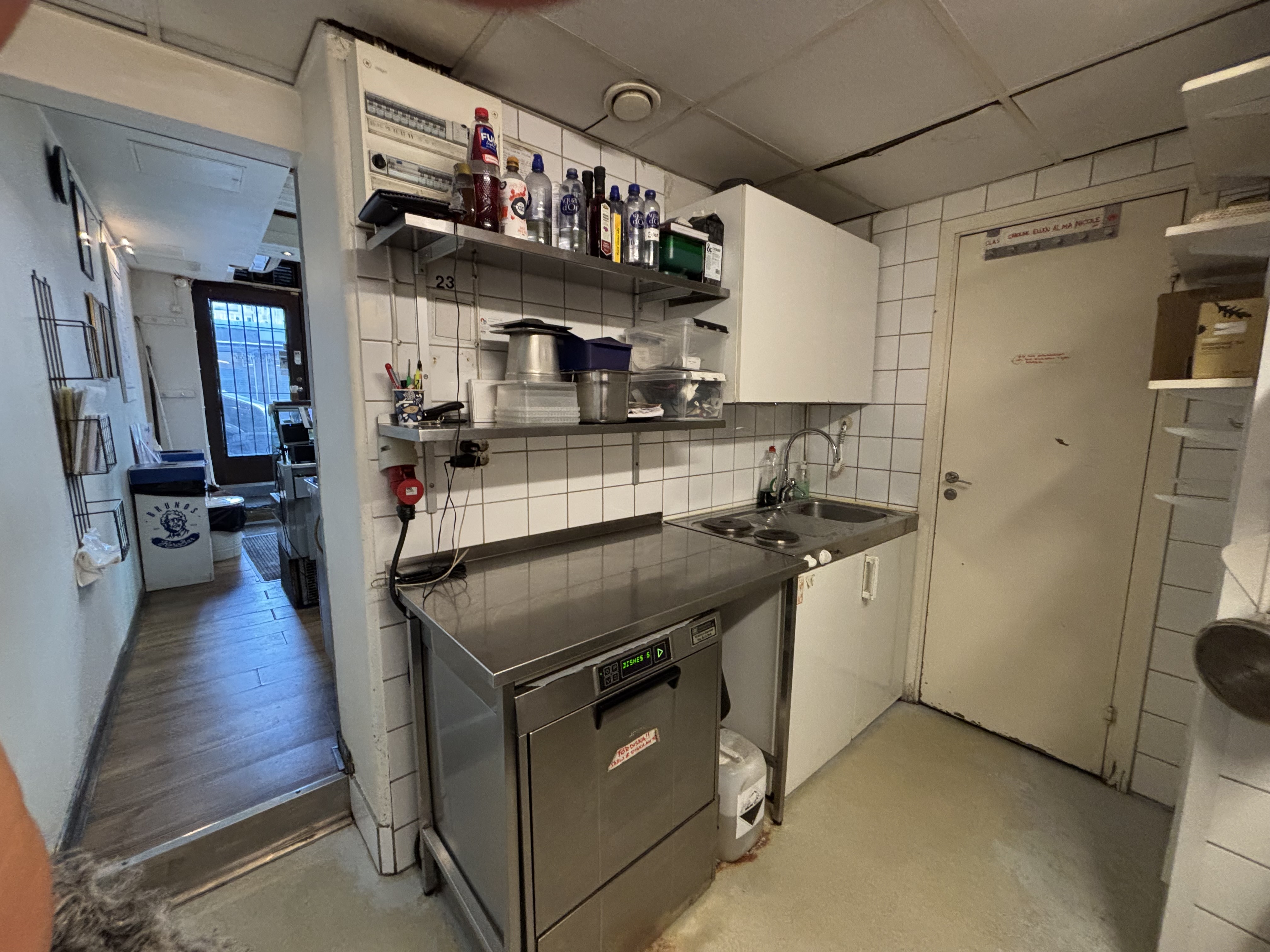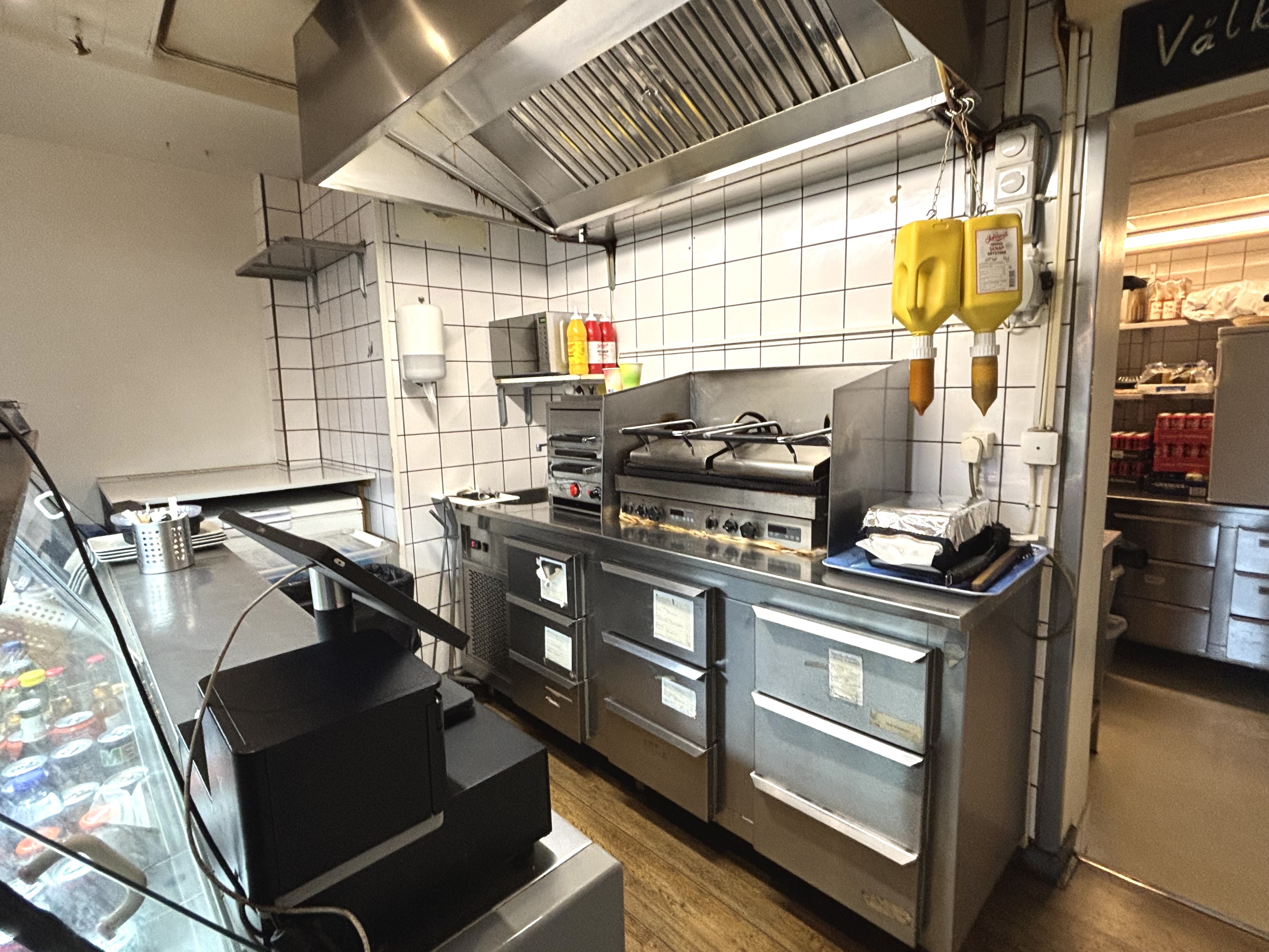 Idag drivs det en korvbar i lokalen men då den verksamheten flyttar till lokalen bredvid rekommenderas inte att fortsätta med det utbudet.