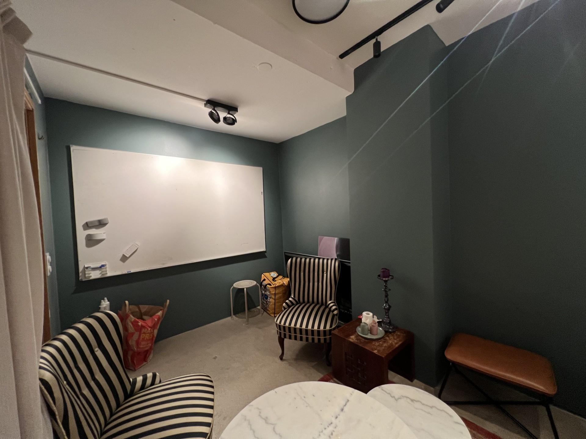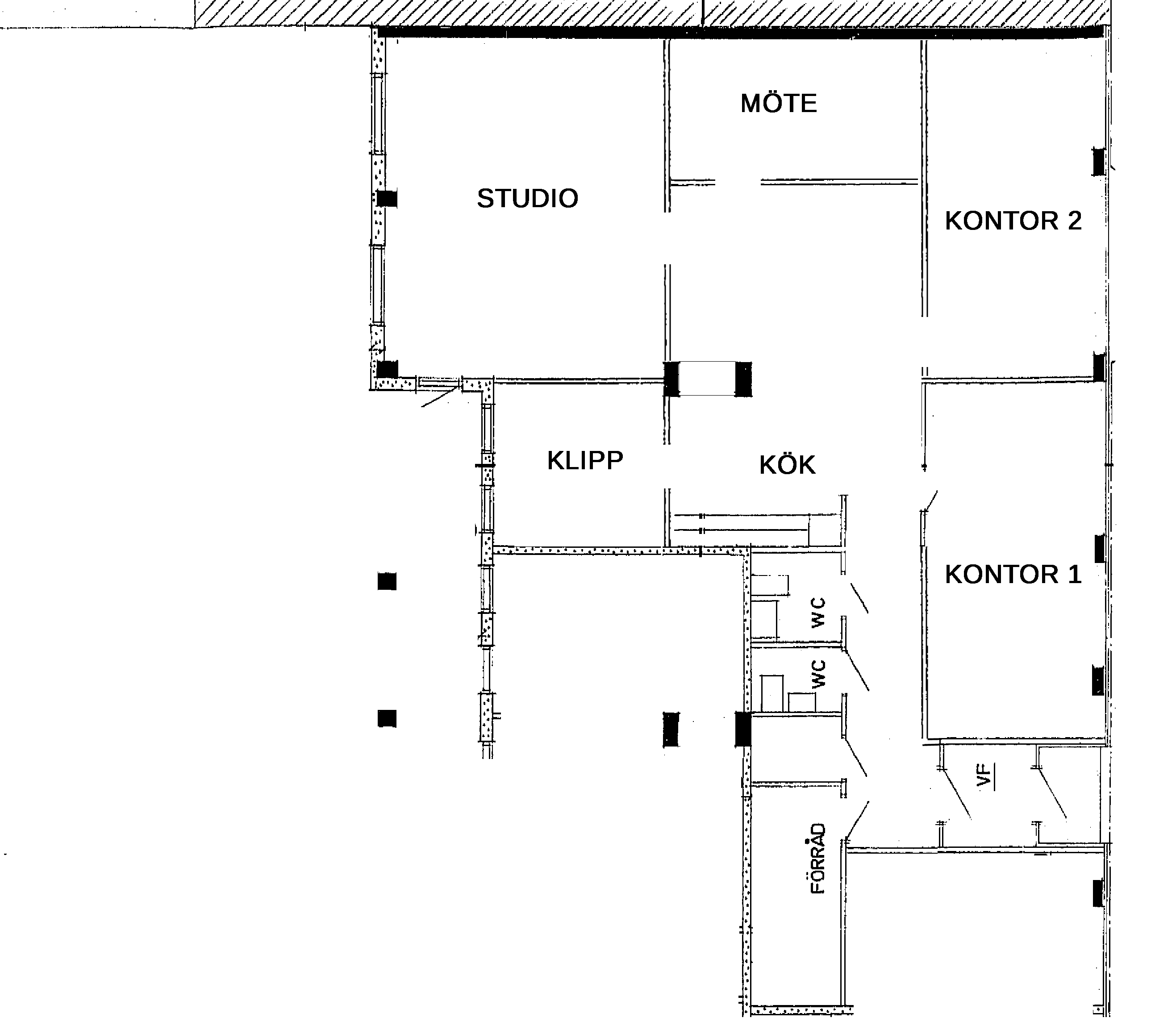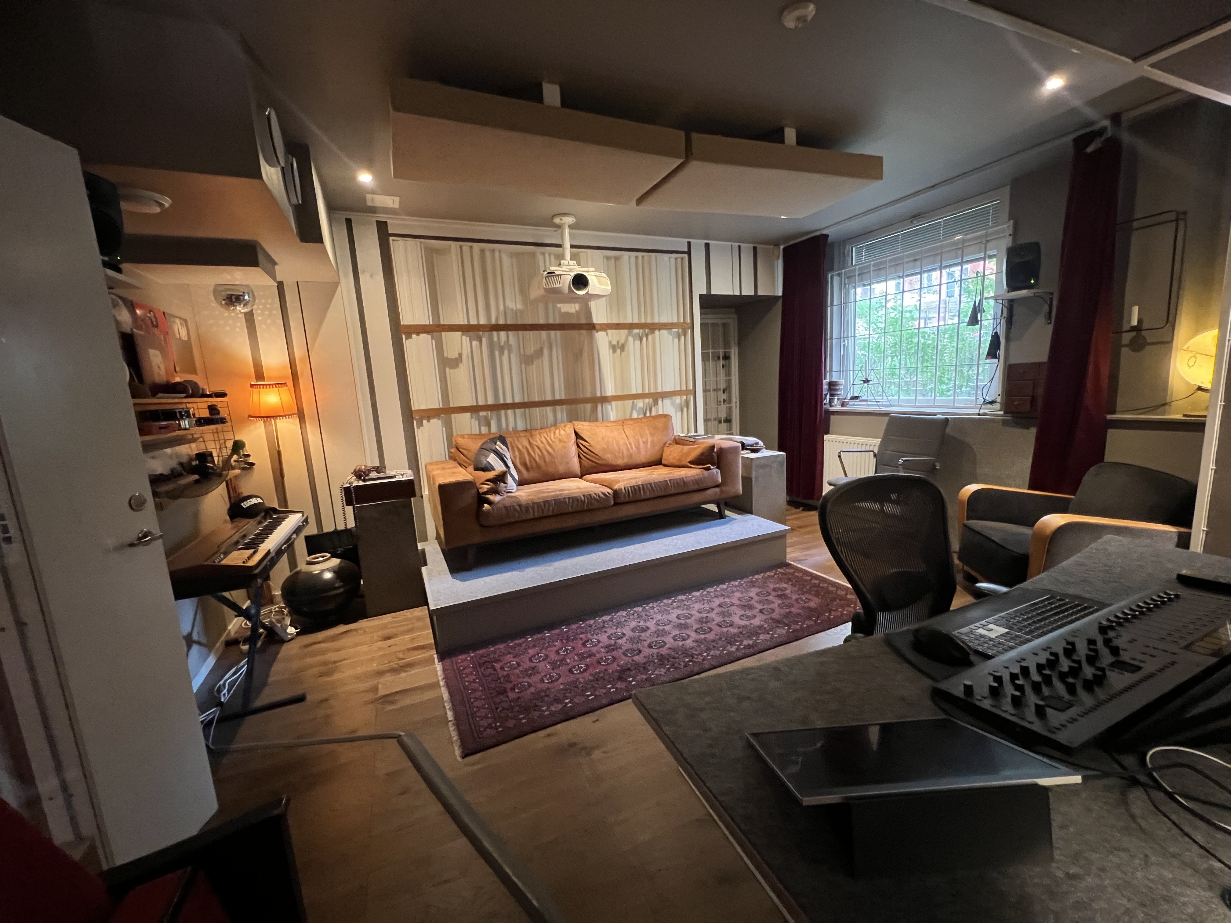 Ett av rummen i lokalen är en ljuddämpad studio med anpassade golv, väggar och tak, fönster och dörrar. Den är idealisk för musikproduktion, poddinspelning, film eller foto och rymmer flera personer. Studion har dessutom fönster för dagsljus och utgång till en trevlig innergård för sköna pauser. Intill ligger ett ordentligt dämpat, men inte helt isolerat, filmklippningsrum som vid behov kan göras om till ytterligare en ljudstudio. Ett annat rum, som idag används som mötesrum, kan konverteras och ljudisoleras för ytterligare studioverksamhet.