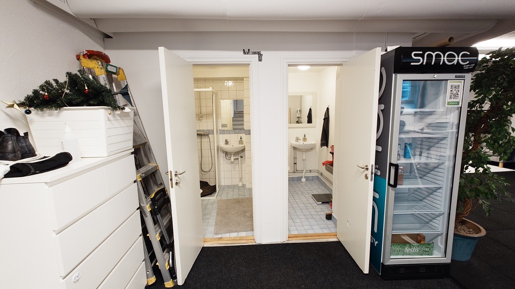 Lokalen är utrustad med två WC, varav en med dusch.