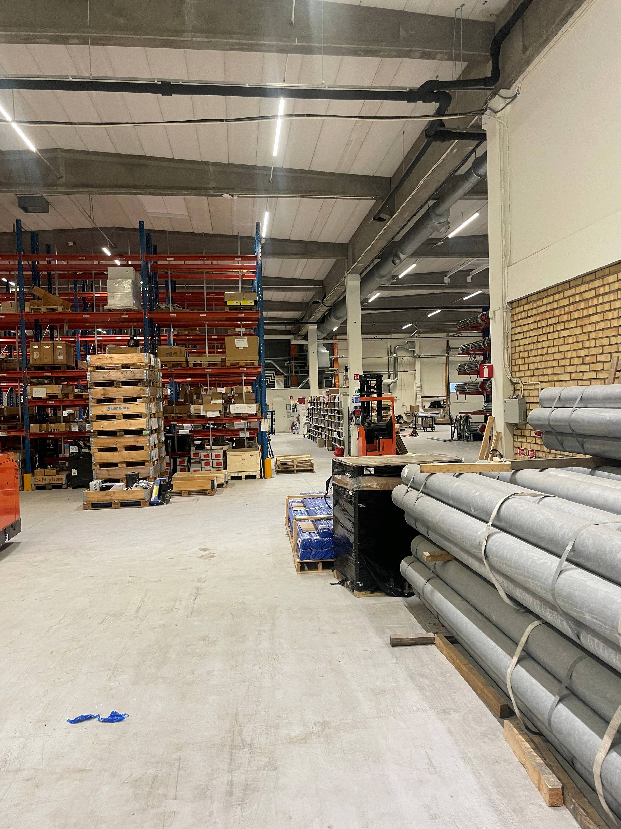 Lokal om 1776 kvm med både lastkaj och markport. Generös takhöjd och öppen planlösning ger optimala möjligheter. Lokalen har en bra receptionsyta för att ta emot kundbesök om man vill. Det finns också kontor, omklädningsrum, pentry och fleratelt WC. Vill man så kan man även hyra grannlokalerna och få en yta upp till 2306 kvm. Det finns även möjlighet att hyra ca 1000 kvm uppställningsyta.