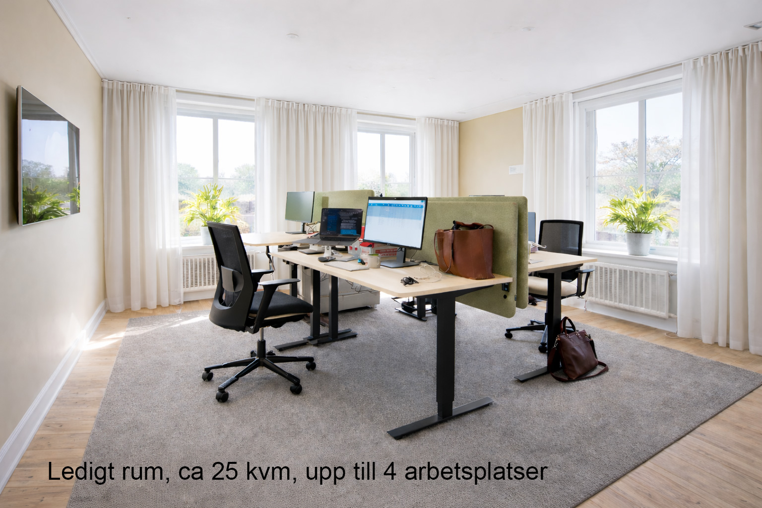 Ljust och representativt kontorsrum om ca 25 kvm – plats för 4 arbetsplatser i stilren miljö