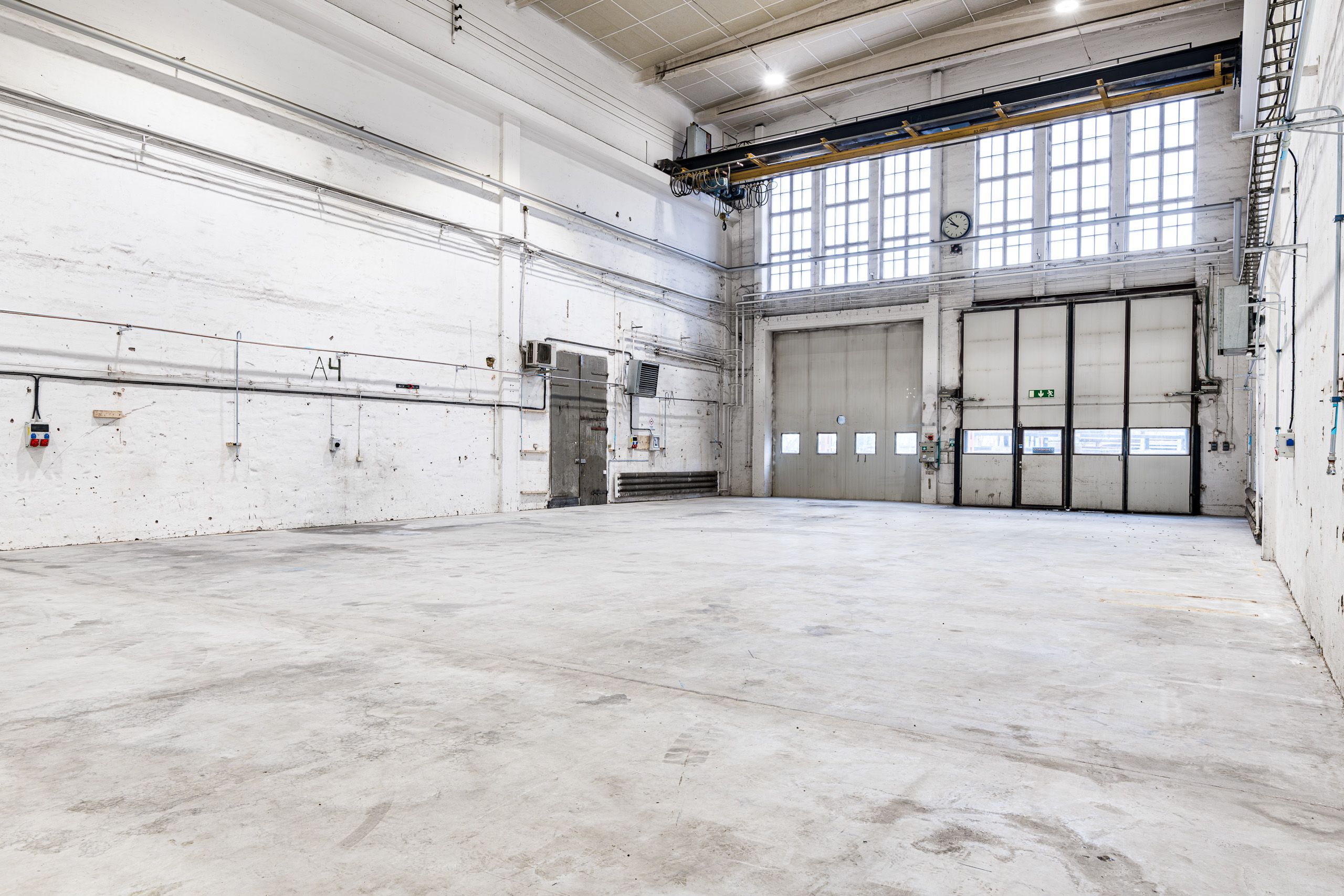 Yta med 8 meter takhöjd är på 450 kvm som passar bra för verkstad och i bakredelen finns det lager verkstad med omklädning, pentry och kontor. Totalt ca 650 kvm.