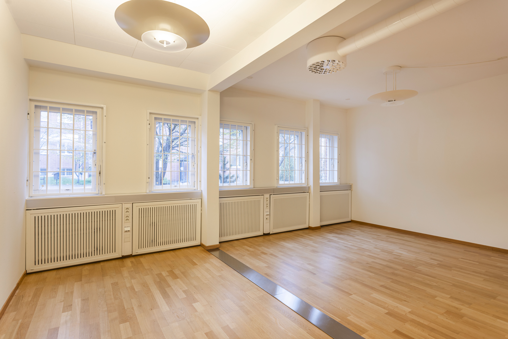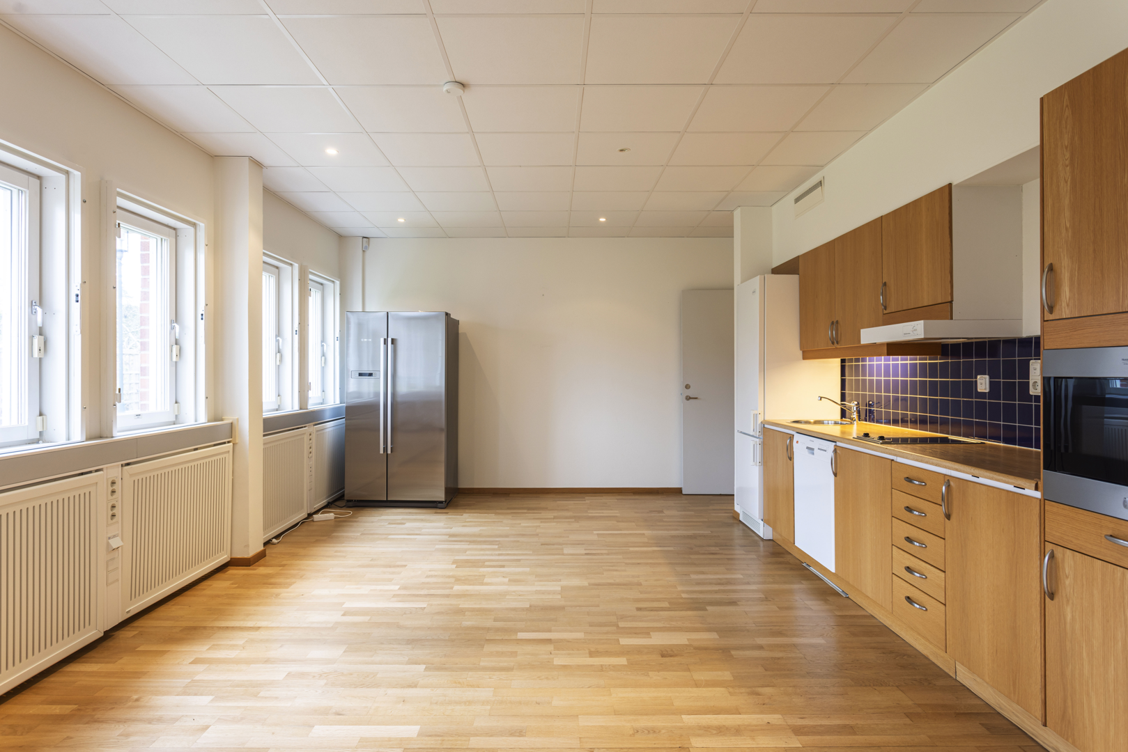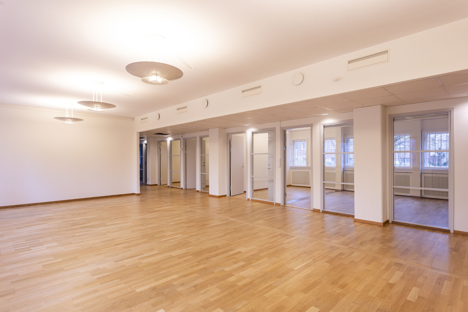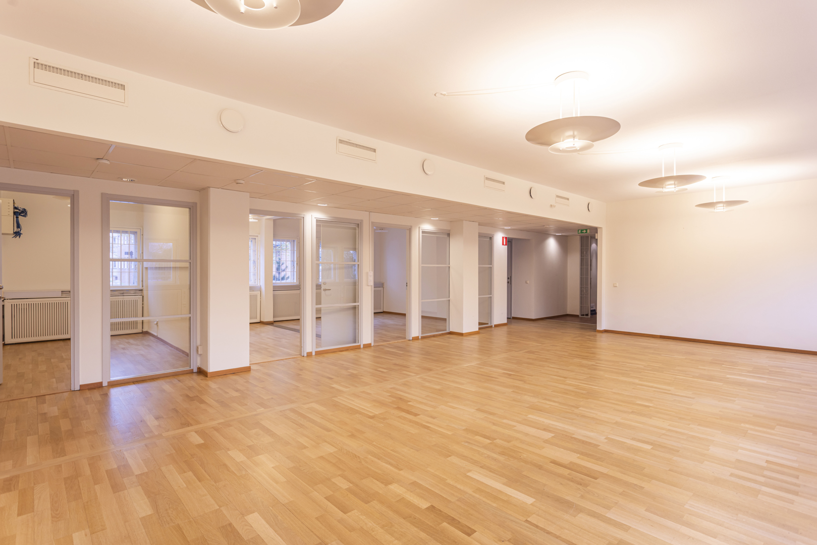 Öppet landskap kombinerat med kontors- och mötesrum.
