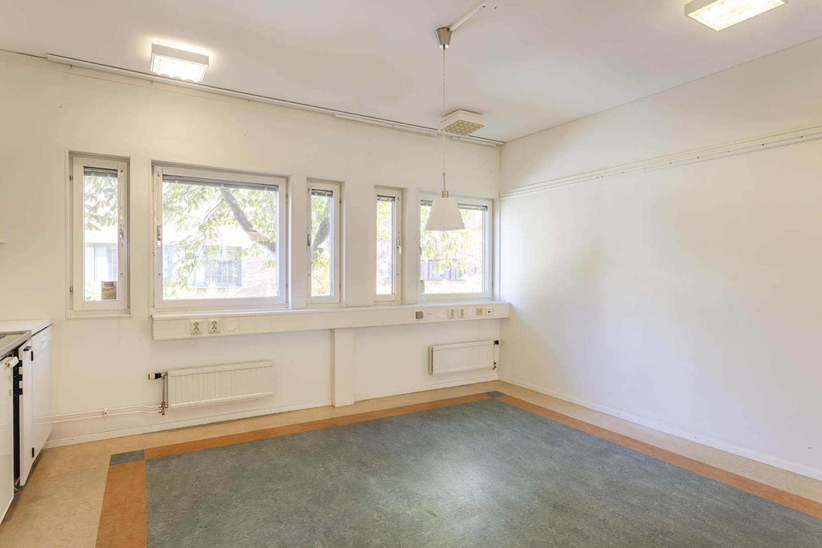 Lokalen erbjuder en ljus och effektiv planlösning med en tydlig uppdelning mellan arbetsytor och gemensamma utrymmen.