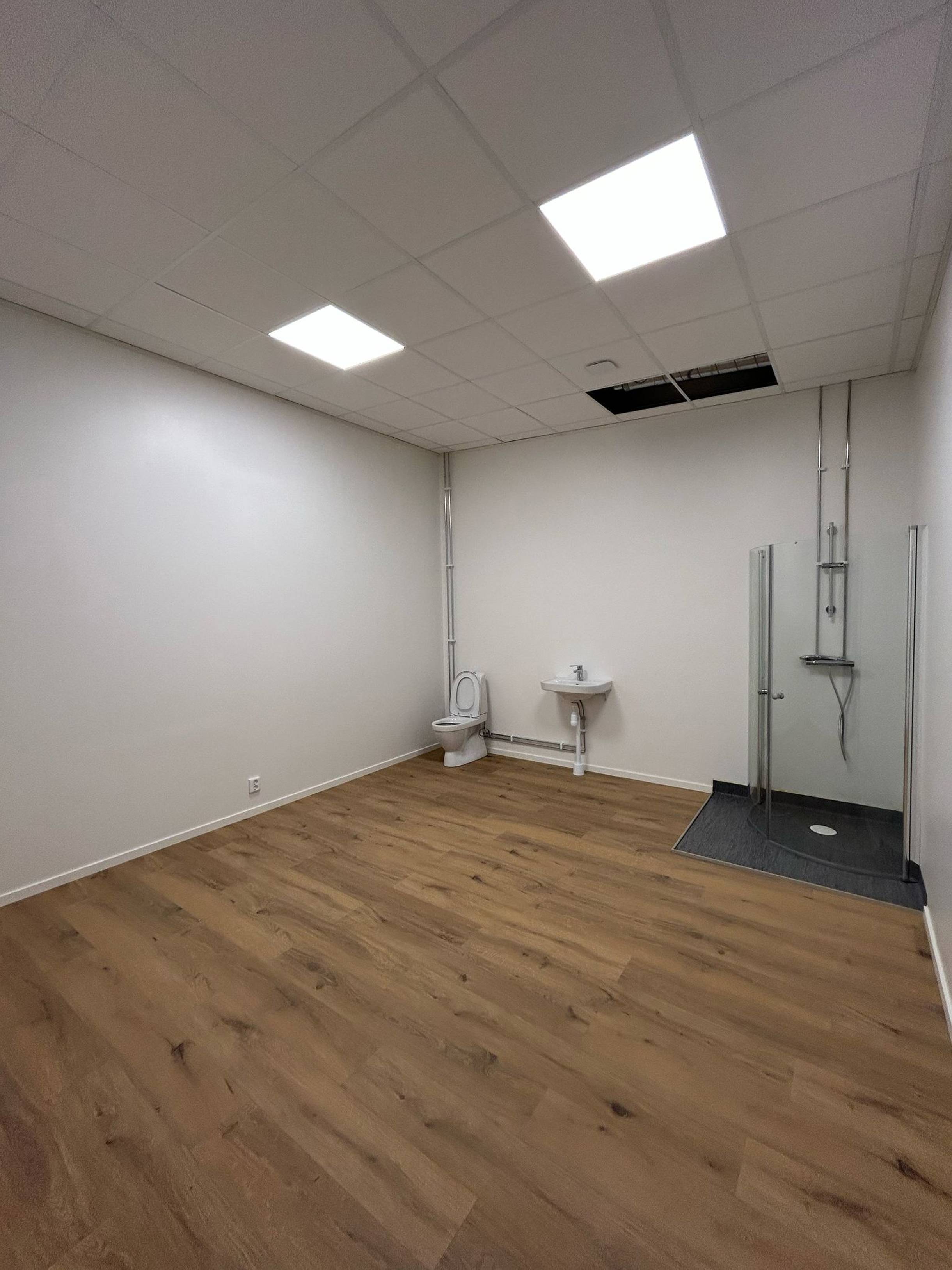 Behöver ni ett litet kontor med dusch och möjlighet till omklädningsrum? Då finns detta kontor beläget i en fin nybyggd byggnad. Ett helt nytt grundmöblemang finns som kan övertas. Kontorsrummet är väldigt ljust med stora fönster från golv till tak. I byggnaden finns även ett gym som kan nyttjas för en mindre extra kostnad. Parkeringsplats finns direkt utanför byggnaden.