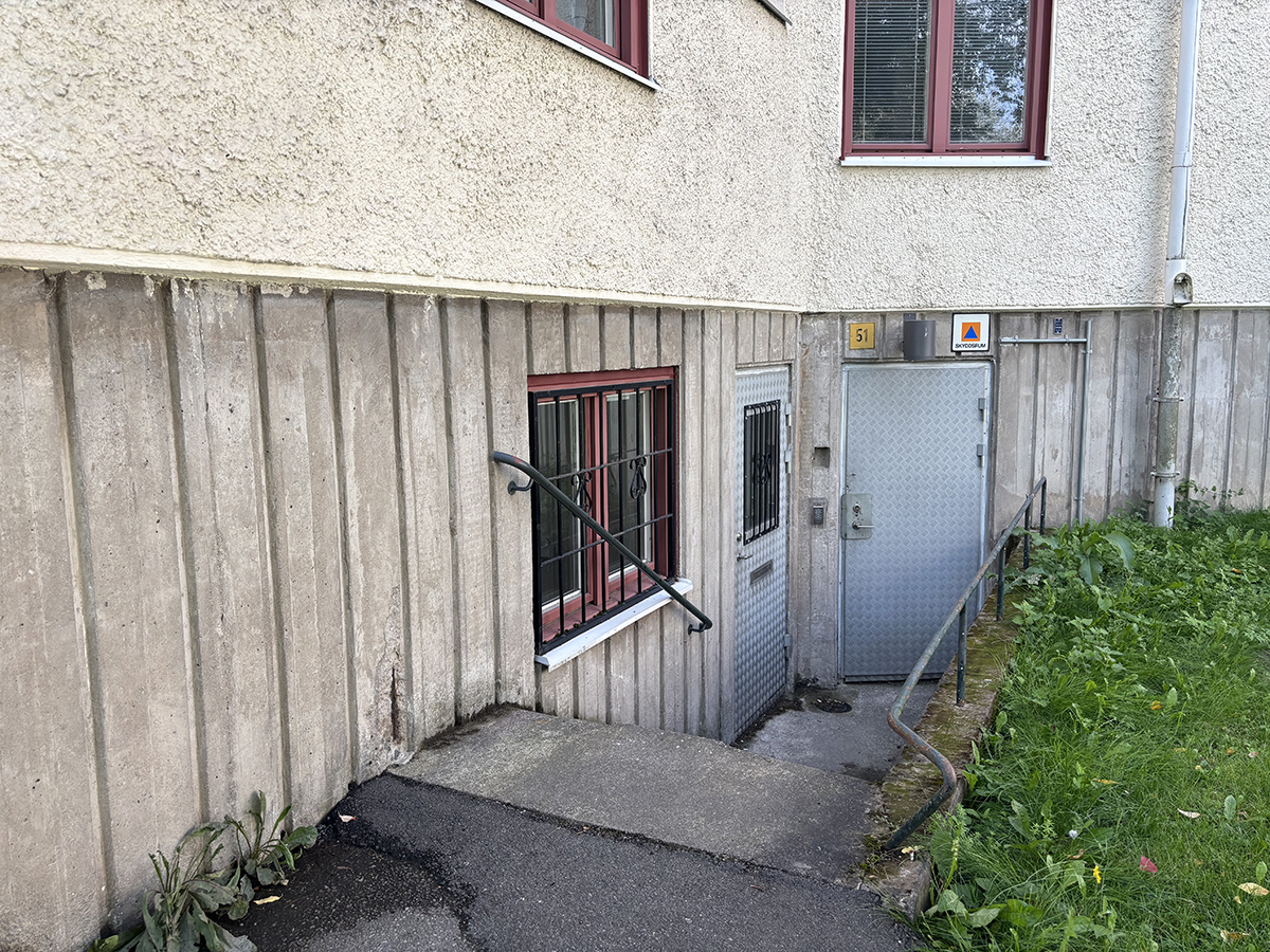 Lokalen ligger i källarplan, en trappa ner i huset med ingång från sidan av fastigheten.