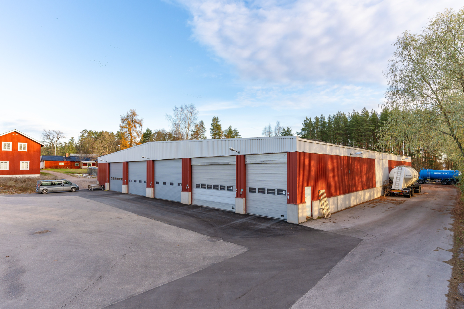 Lokalen ligger strategiskt placerad vid på-/avfart till E16 och med närhet till E4. Lokalen innefattar till största del garage med möjlighet till genomkörning via flertalet portar. Fastigheten är uppdelad på två byggnader, där den ena utöver garage även inrymmer kontors- och personaldelar.