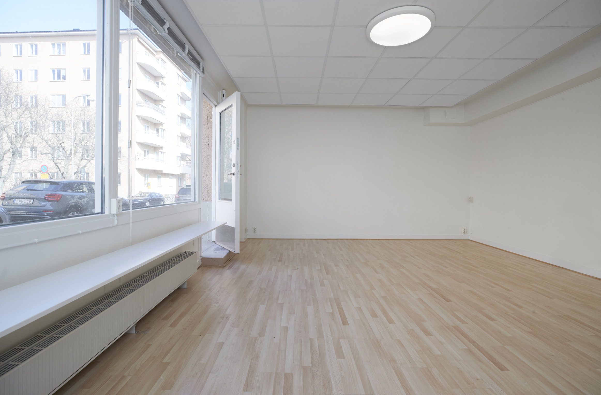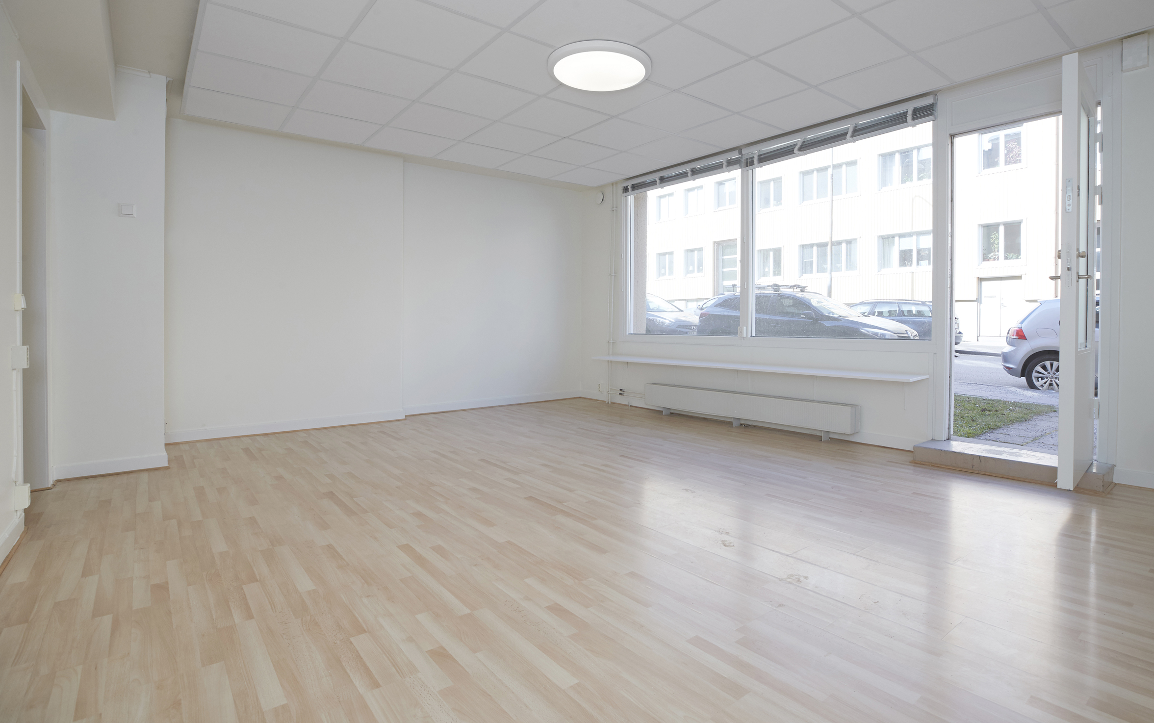 Mindre kontorslokal på markplan med stora, ljusinsläppande fönster mot Vetegatan. Mysig bakgård går att nå för trevliga pauser. Lokalen består av två våningar; ett öppet kontorsplan med wc och källarplan med lagermöjlighet samt pentry.