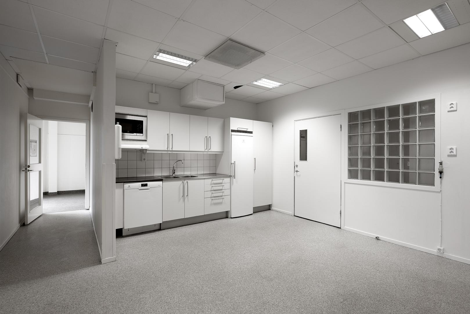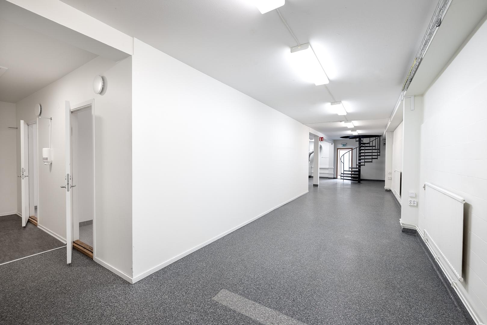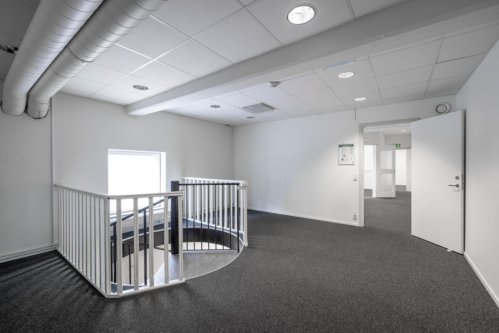 Lokalen erbjuder en blandad planlösning med rymligt pentry, mötesrum, två WC samt två omklädningsrum med dusch på bottenvåningen, här finns också plats för lager. På övervåningen finns kontorsrum av olika storlek med plats för ca 10-15 personer.