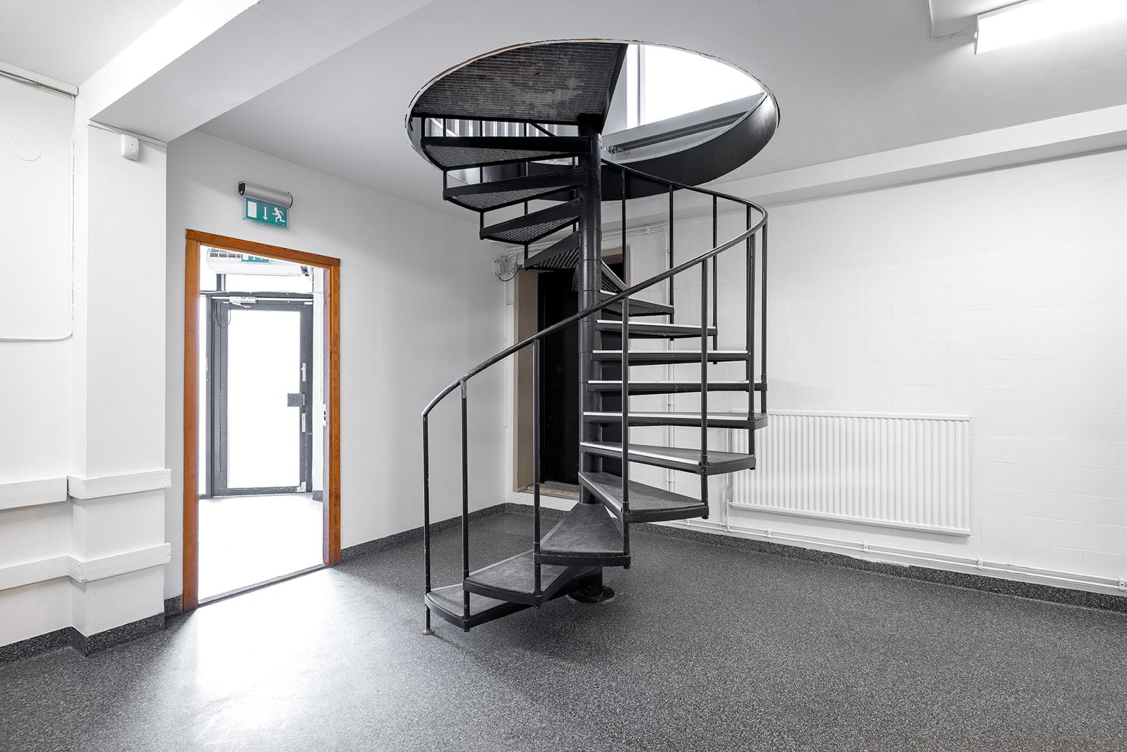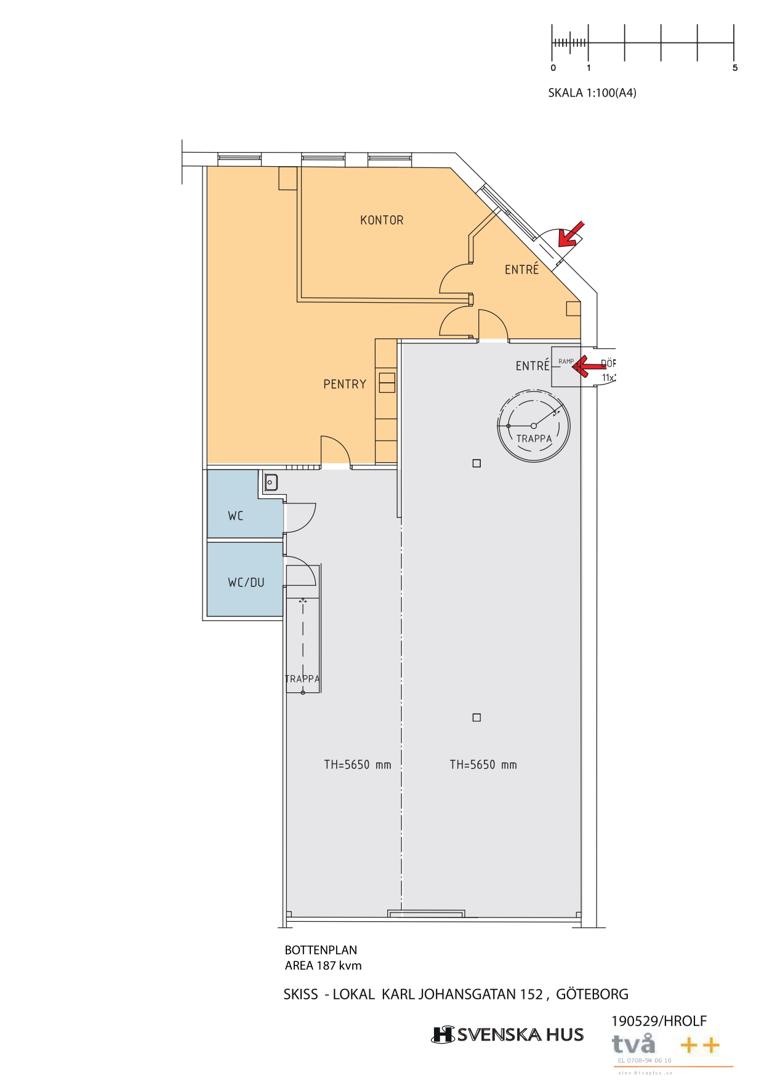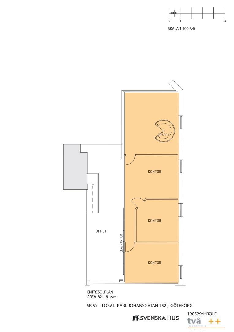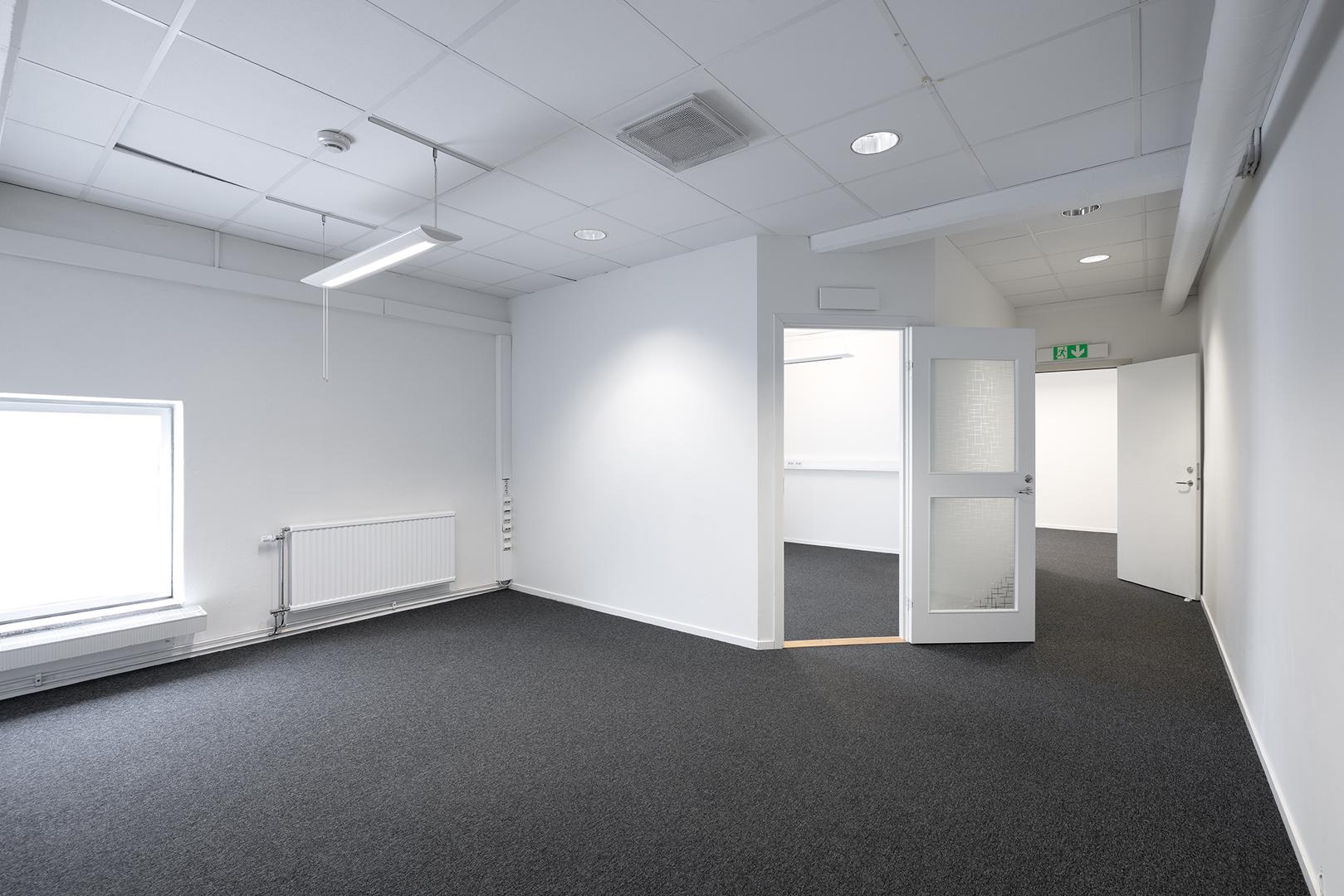 Lokalen erbjuder en blandad planlösning med rymligt pentry, mötesrum, två WC samt två omklädningsrum med dusch på bottenvåningen, här finns också plats för lager. På övervåningen finns kontorsrum av olika storlek med plats för ca 10-15 personer.