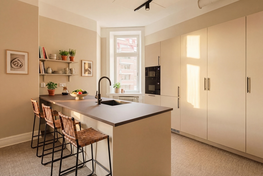 Parkeringsplatser finns på innergården och i intilliggande garage.