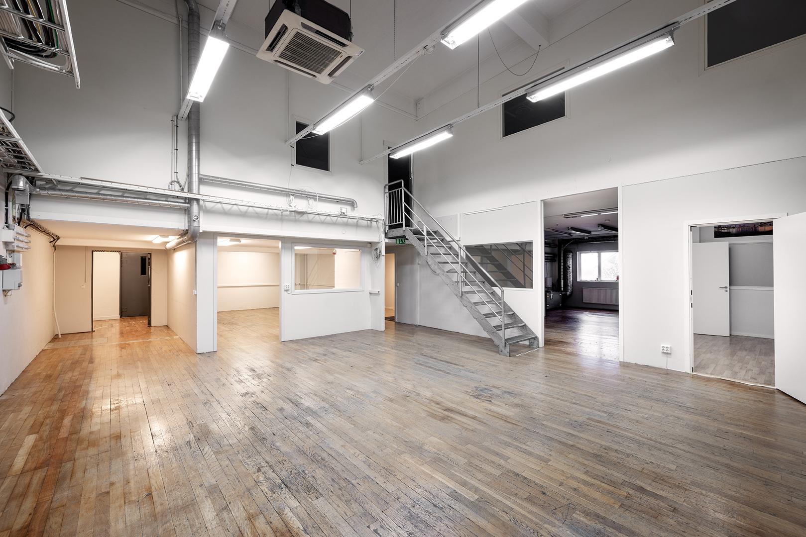 Här erbjuds en kombilokal utöver det vanliga. Lokalen erbjuder en fin lageryta om ca 300 m² med tillgång till inlastning via lastkaj, kontorsytorna är belägna på entréplan samt en trappa upp och är på ca 336 kvm. Ytor innehåller också omklädningsrum med dusch och WC. Lokalen nås via entrén från innergården samt via fastighetens huvudentré. Via interntrappan tar man sig upp till entresol planet där man möts av en öppen kontorsyta samt ett stort rum för möten eller lounge-häng samt omklädningsrum.