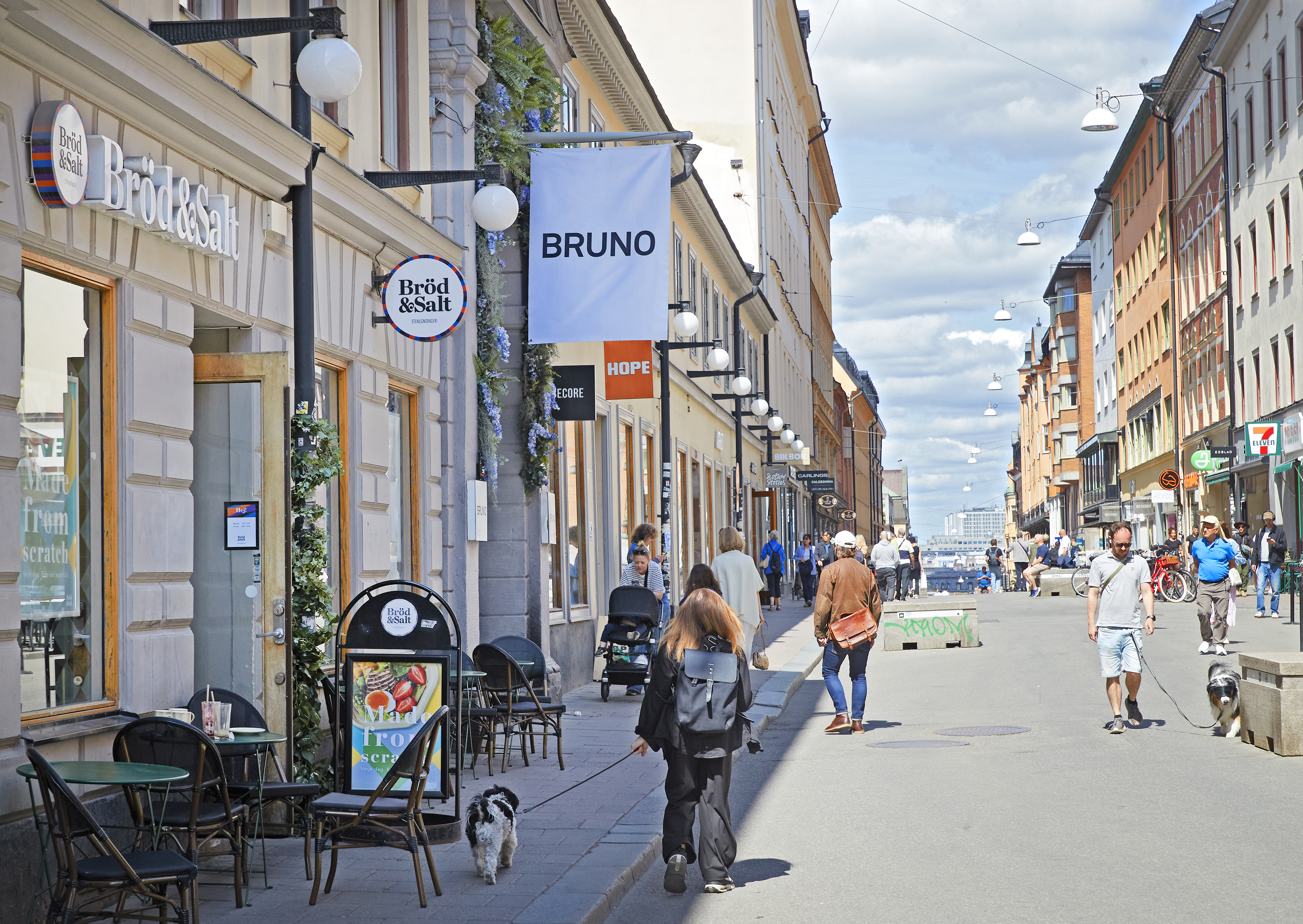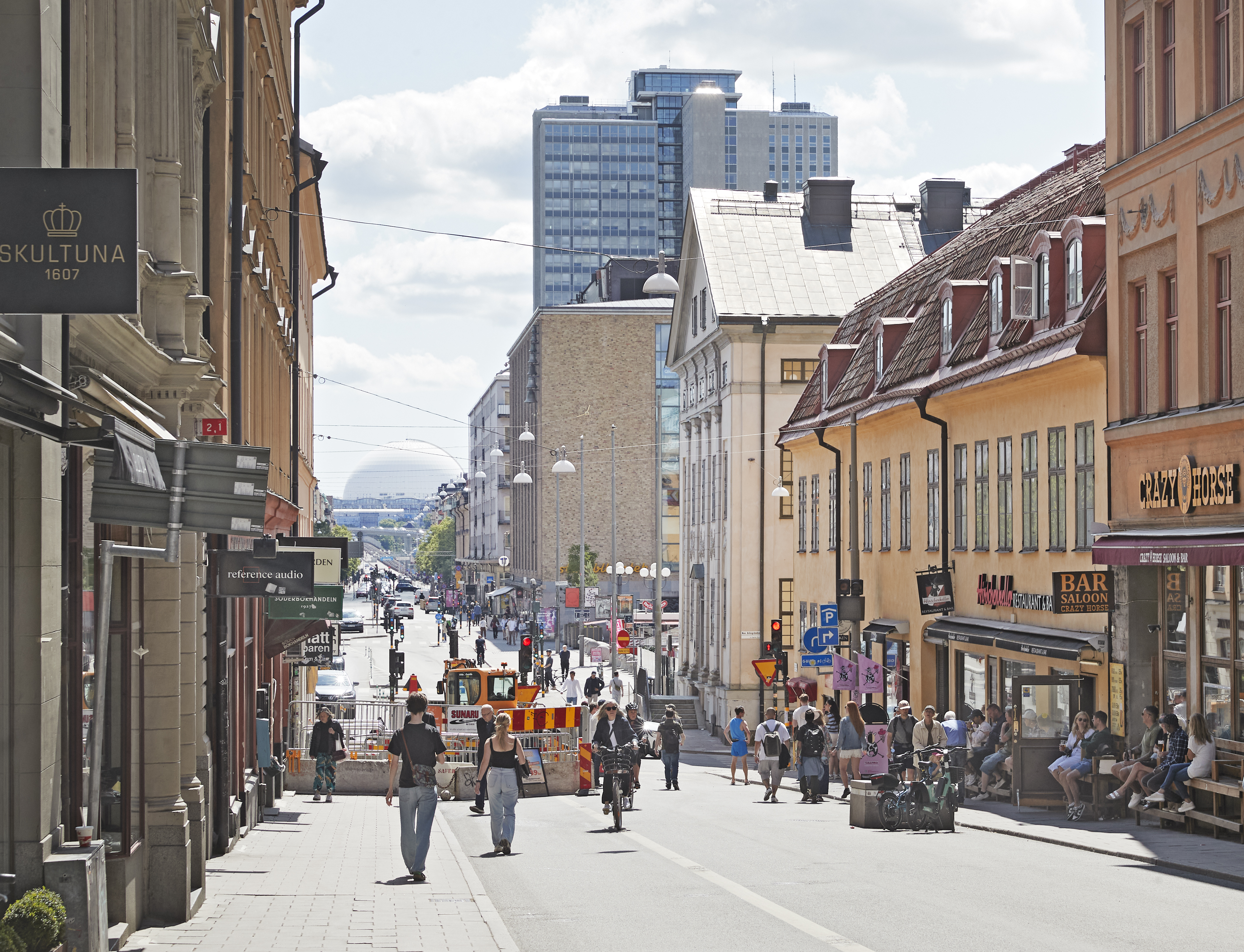 Götgatans enorma utbud av diverse service utanför fastigheten.