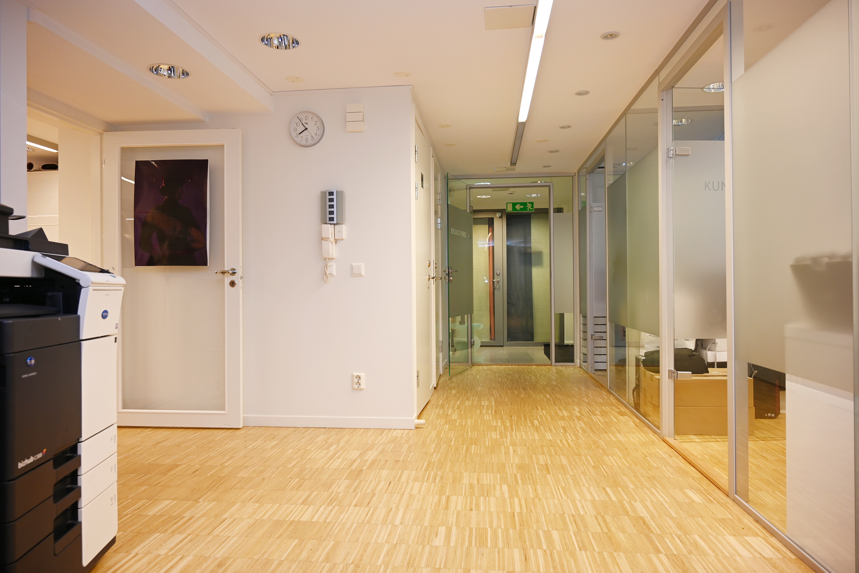 En större öppen area med plats för många arbetsplatser samt fyra rum i varierande storlekar. I mittkärnan finns en trevligt pentry med plats för sittplatser. Utöver detta finns även 2 st WC varav ena med dusch.