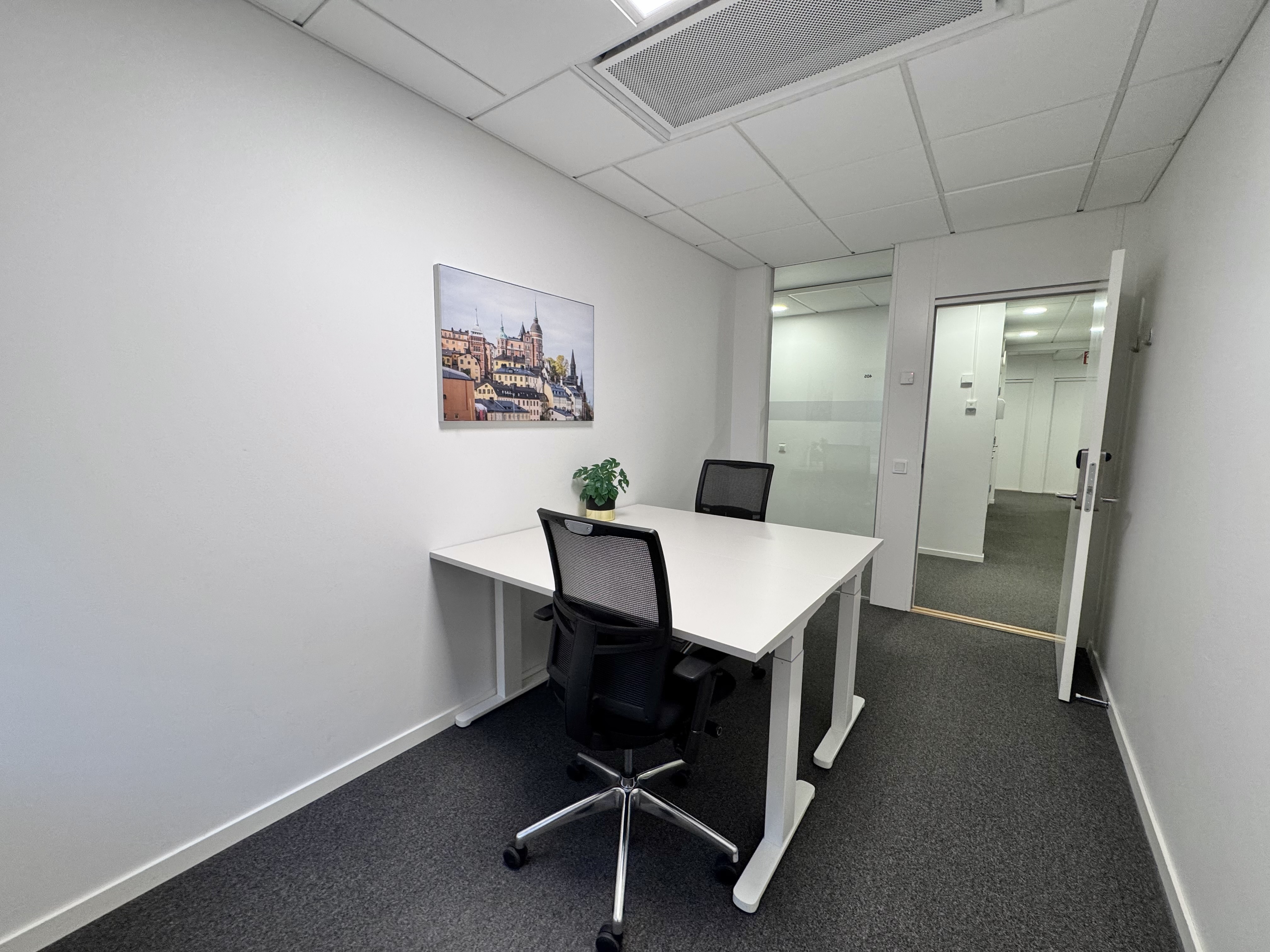 Lokalerna är utformade för flexibilitet och erbjuder allt från egna kontorsrum till coworkingplatser och virtuella kontor. Det gör det enkelt att anpassa lösningen efter era behov. Samtliga arbetsytor är ljusa, funktionella och utrustade med ergonomiska möbler, höj- och sänkbara skrivbord samt snabbt och stabilt WiFi.