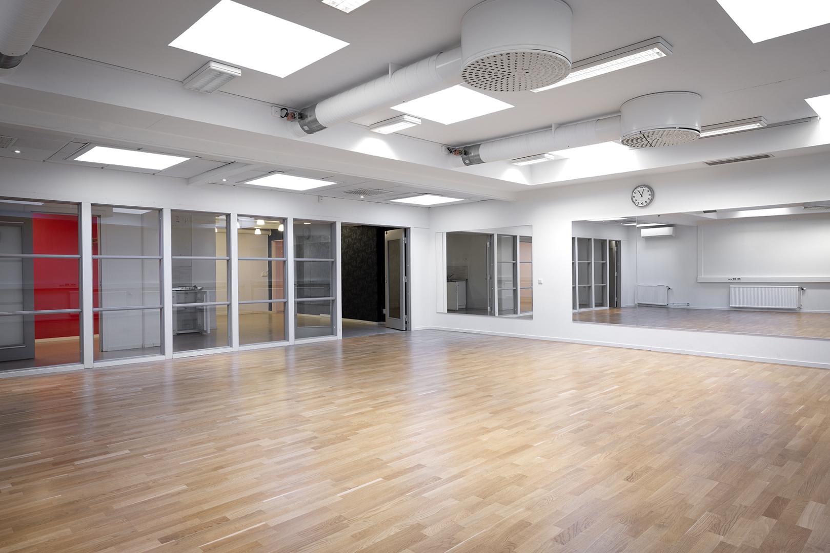 Tillfälle att hyra en lokal som passar utmärkt för träning, lager mm. Lokalen har tidigare använts till dansstudio men skulle även passa bra för annan typ av träning, tex Yoga, gym med cirkelträning tex. Ytan lämpar sig även som lagerutrymme. Här finns mindre pentry, WC samt förråd. Lokalen nås via trapphuset, hiss finns upp till vån 1. Lokalen har takfönster som ger lokalen ett fint ljusinsläpp.