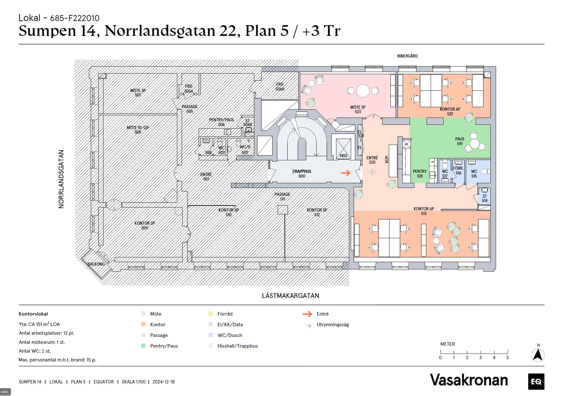 Ljust kontor med citys bästa läge Näst högst upp i huset, på Norrlandsgatan 22, väntar en arbetsplats som kombinerar ljus, rymd och ett oslagbart cityläge. Lokalen om 151 kvm är perfekt dimensionerad för cirka 12 arbetsplatser och erbjuder en arbetsmiljö där trivsel och effektivitet går hand i hand. Genom stora fönster flödar dagsljuset in och ger en öppen och inspirerande känsla. Planlösningen är yteffektiv och flexibel, vilket gör det enkelt att skapa en balans mellan gemensamma ytor för samarbete och rum för mer fokuserade uppgifter. Mitt i stadens puls Med Stureplan, Sergelstan och Mood-kvarteret runt hörnet har ni alltid nära till restauranger, shopping och service. Här finns allt som gör arbetsdagen smidigare – från snabba luncher och träningsmöjligheter till after work och affärsmöten. Ett kontor för er som vill ha en representativ adress, ett centralt läge och en arbetsplats som bidrar till både energi och inspiration i vardagen.