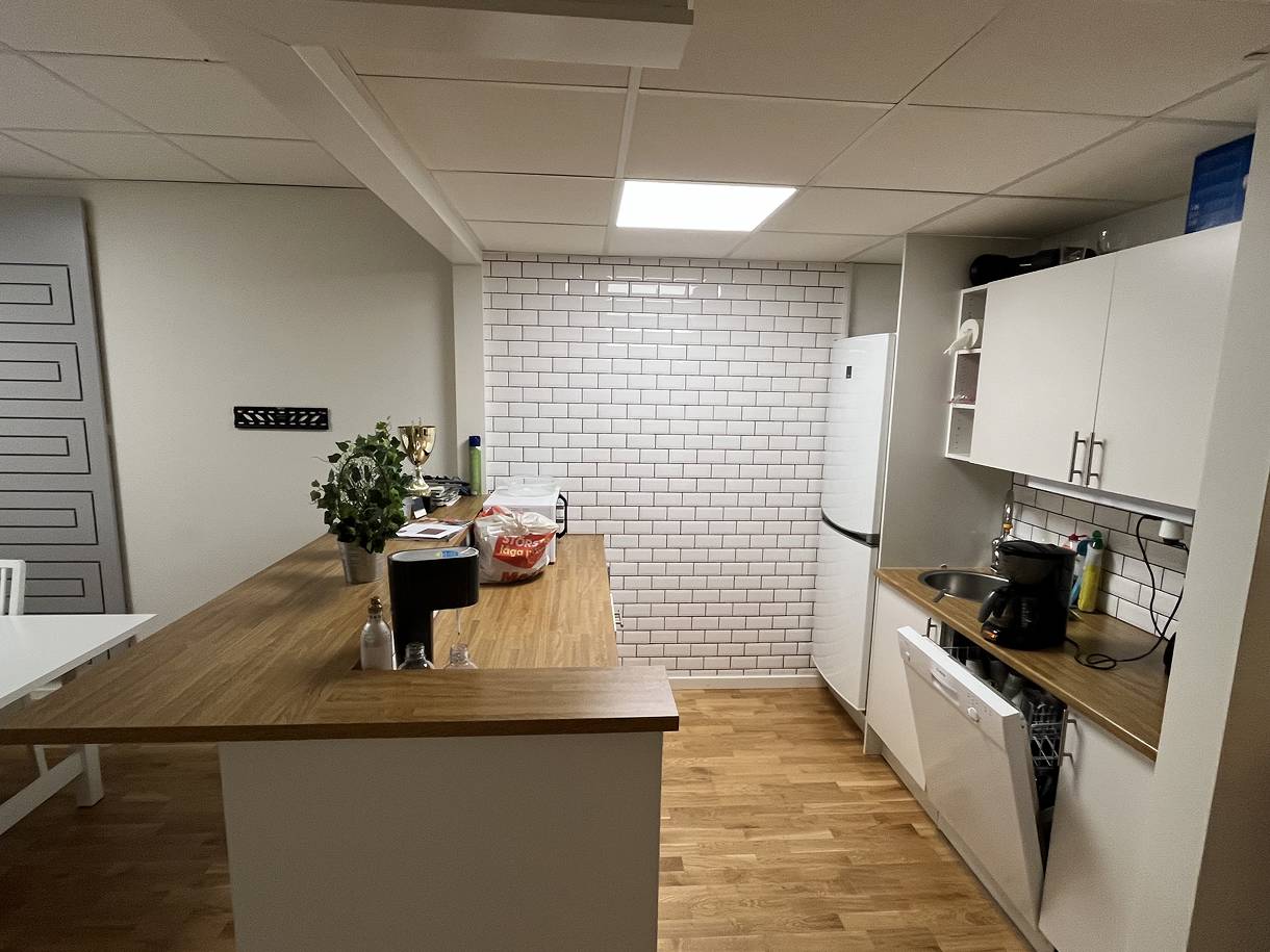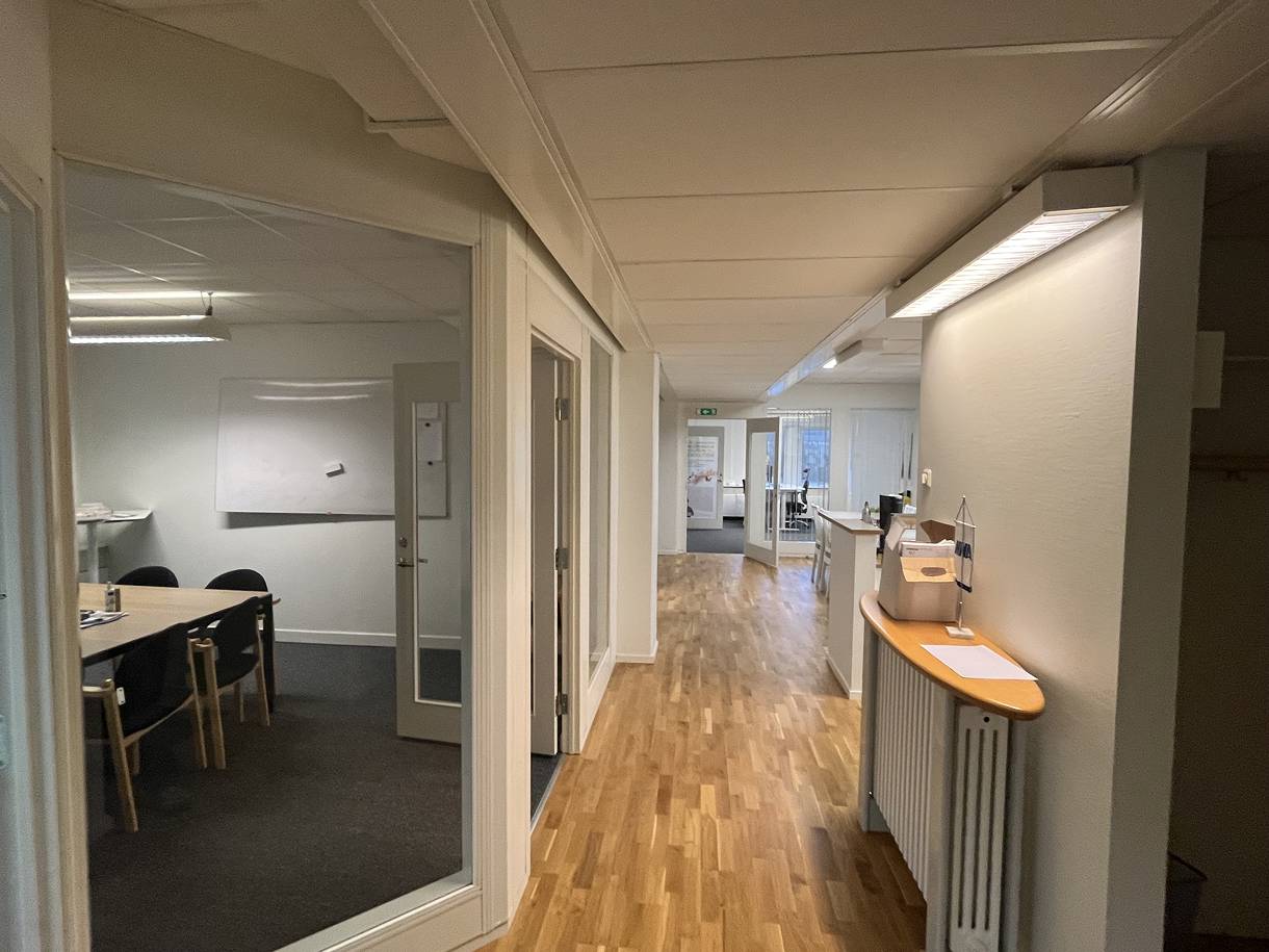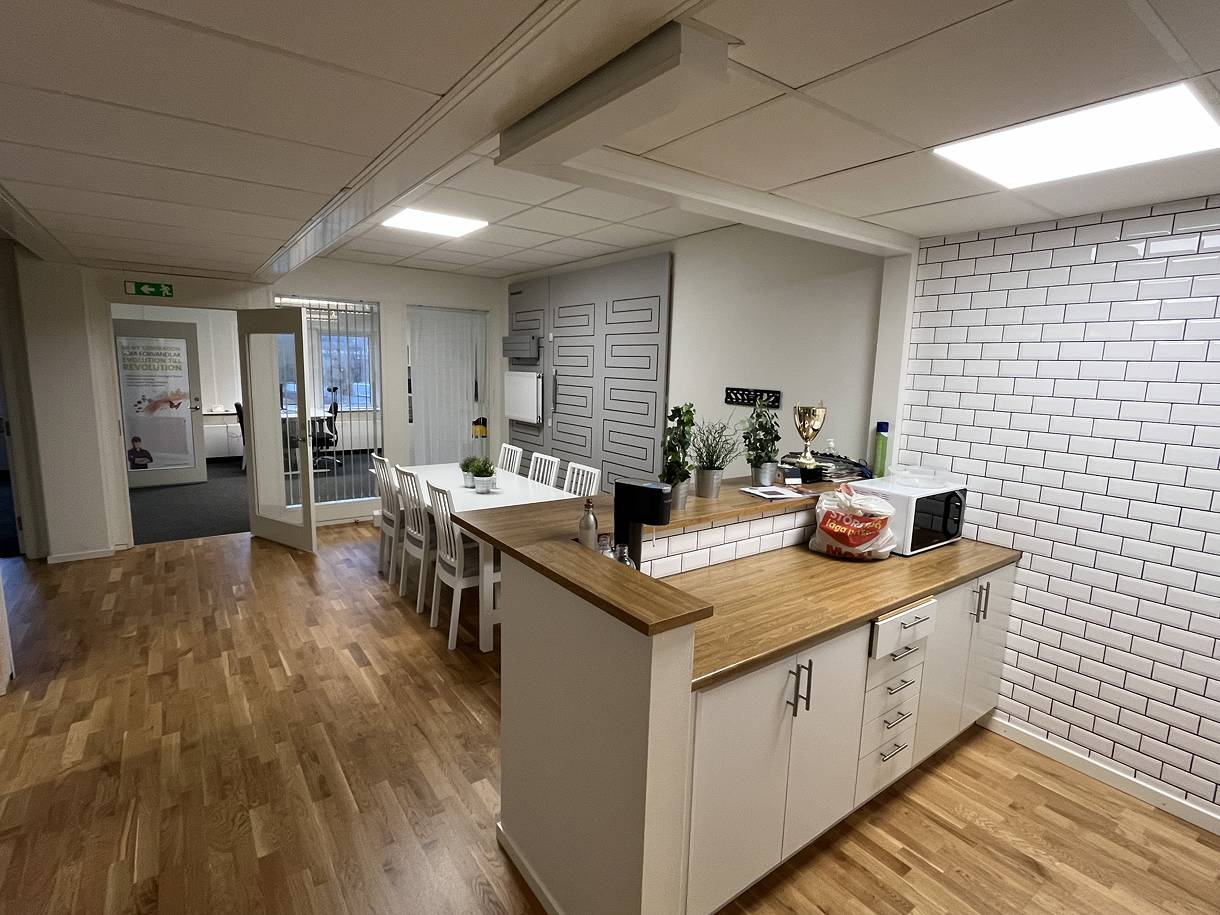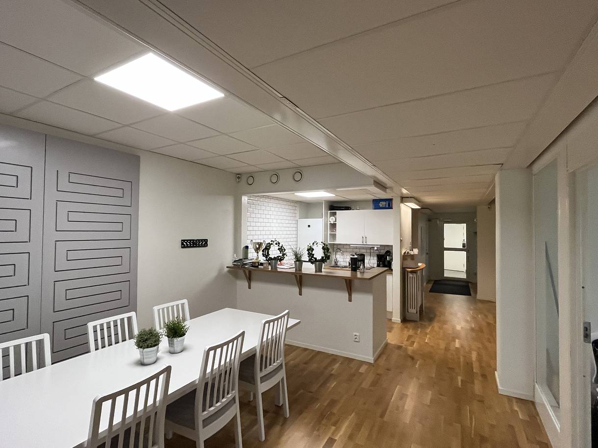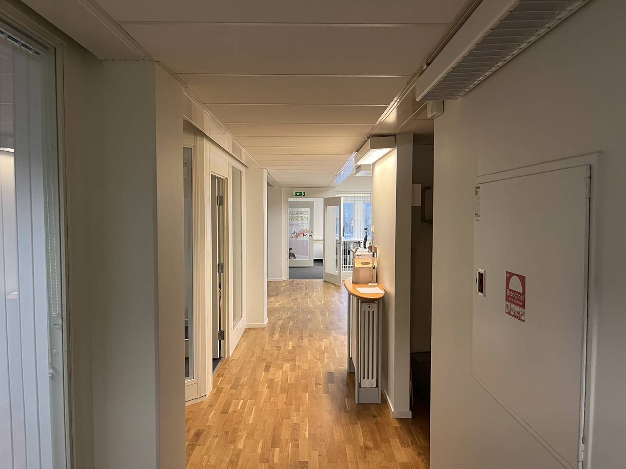 Lokalen har genomgående ljusa ytskikt och fina golv som bidrar till en trivsam och professionell arbetsmiljö.