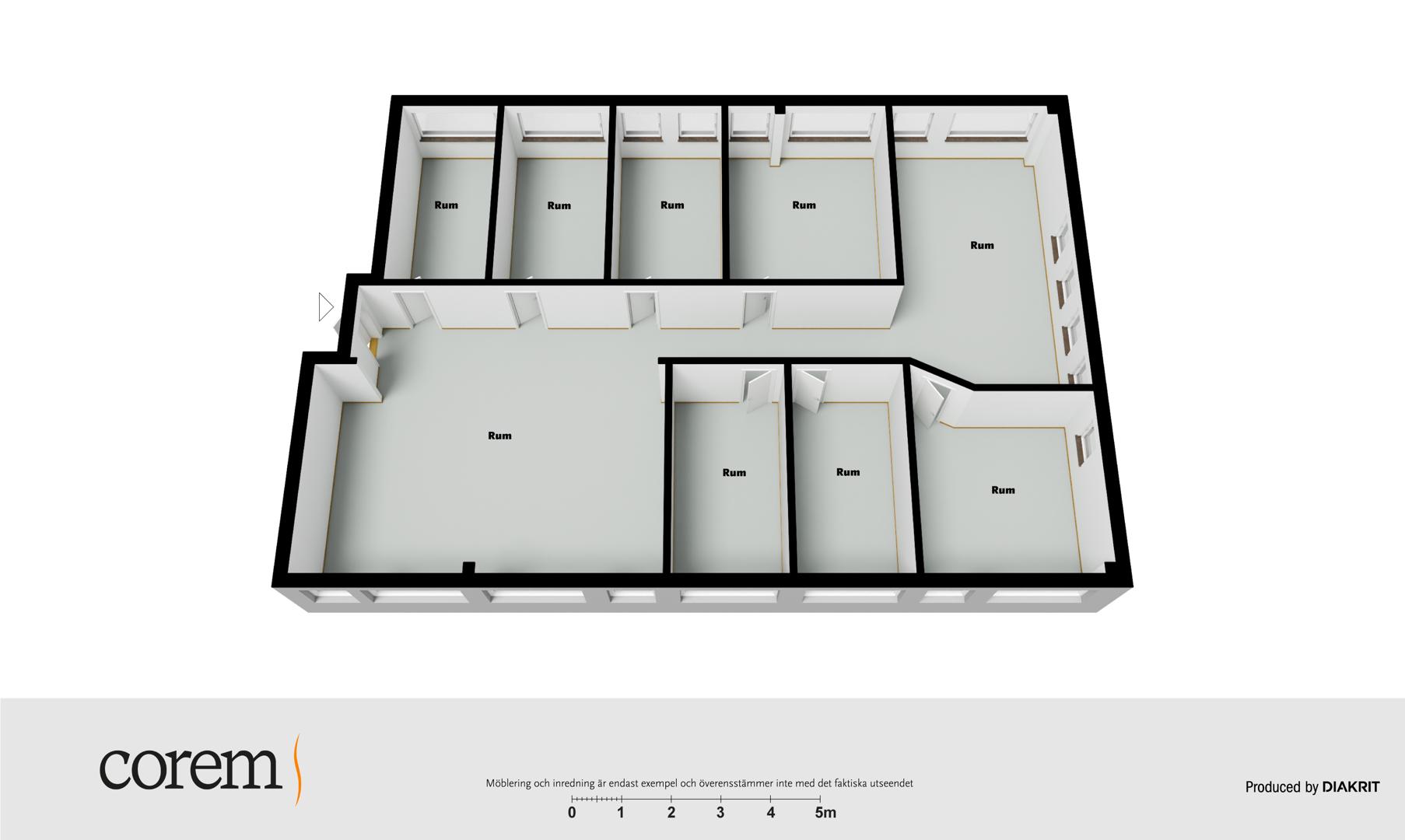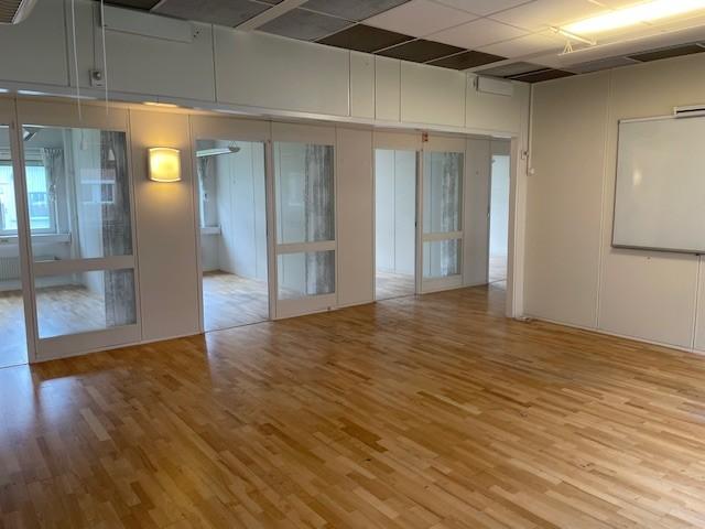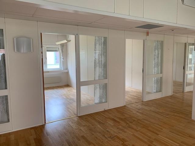 Planlösningen är genomtänkt med en rymlig, öppen yta direkt vid entrén. Längre in i lokalen finns pentry, gemensamhetsytor och ytterligare en öppen del som kan anpassas efter era behov. Här finns också sju stycken mindre cellkontor som passar utmärkt för koncentrerat arbete eller som mötesrum. Lokalen lämpar sig för 12 arbetsplatser.