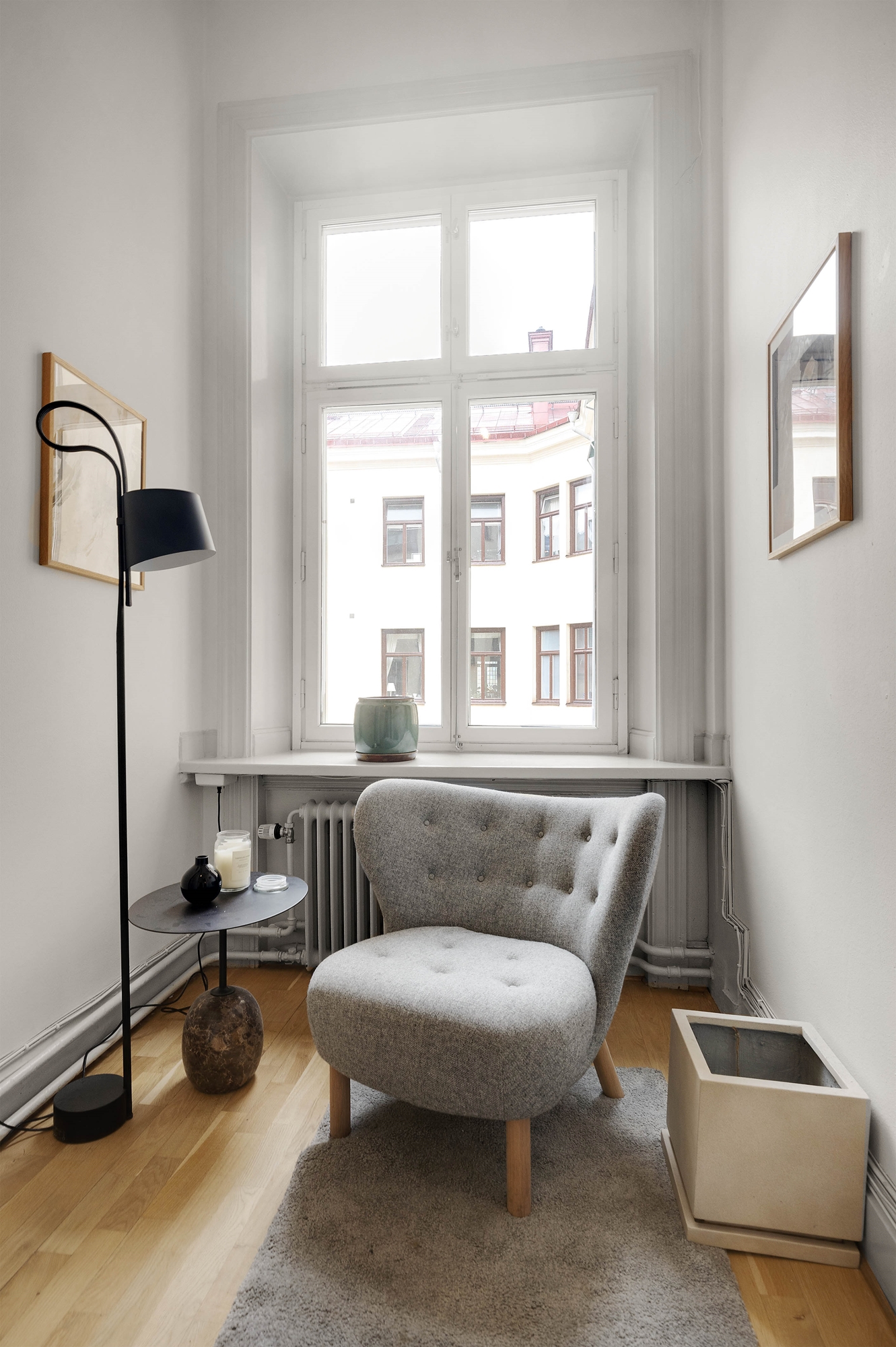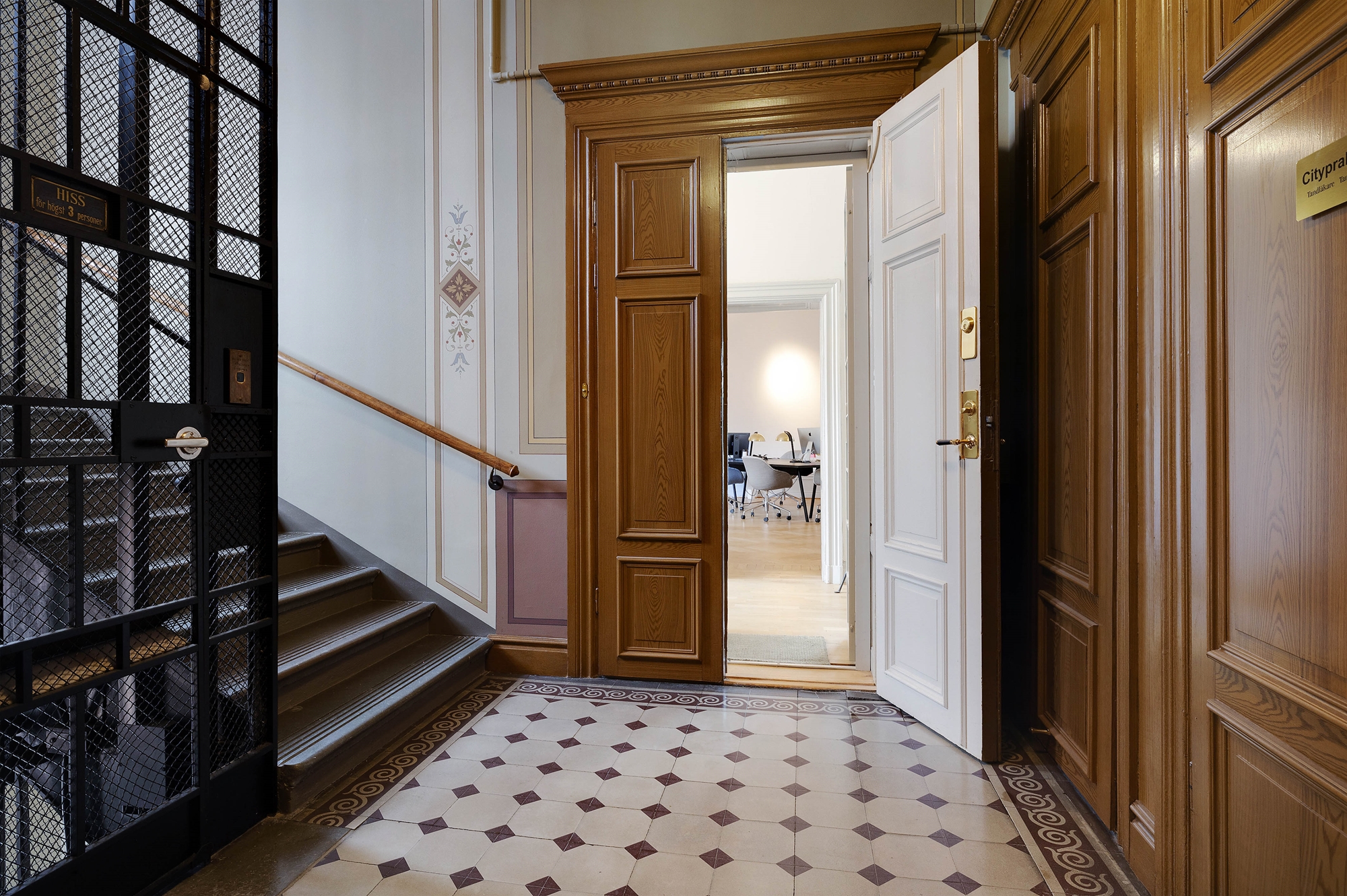 Du välkomnas in i en ljus och trevlig hall med fönster mot innergård.