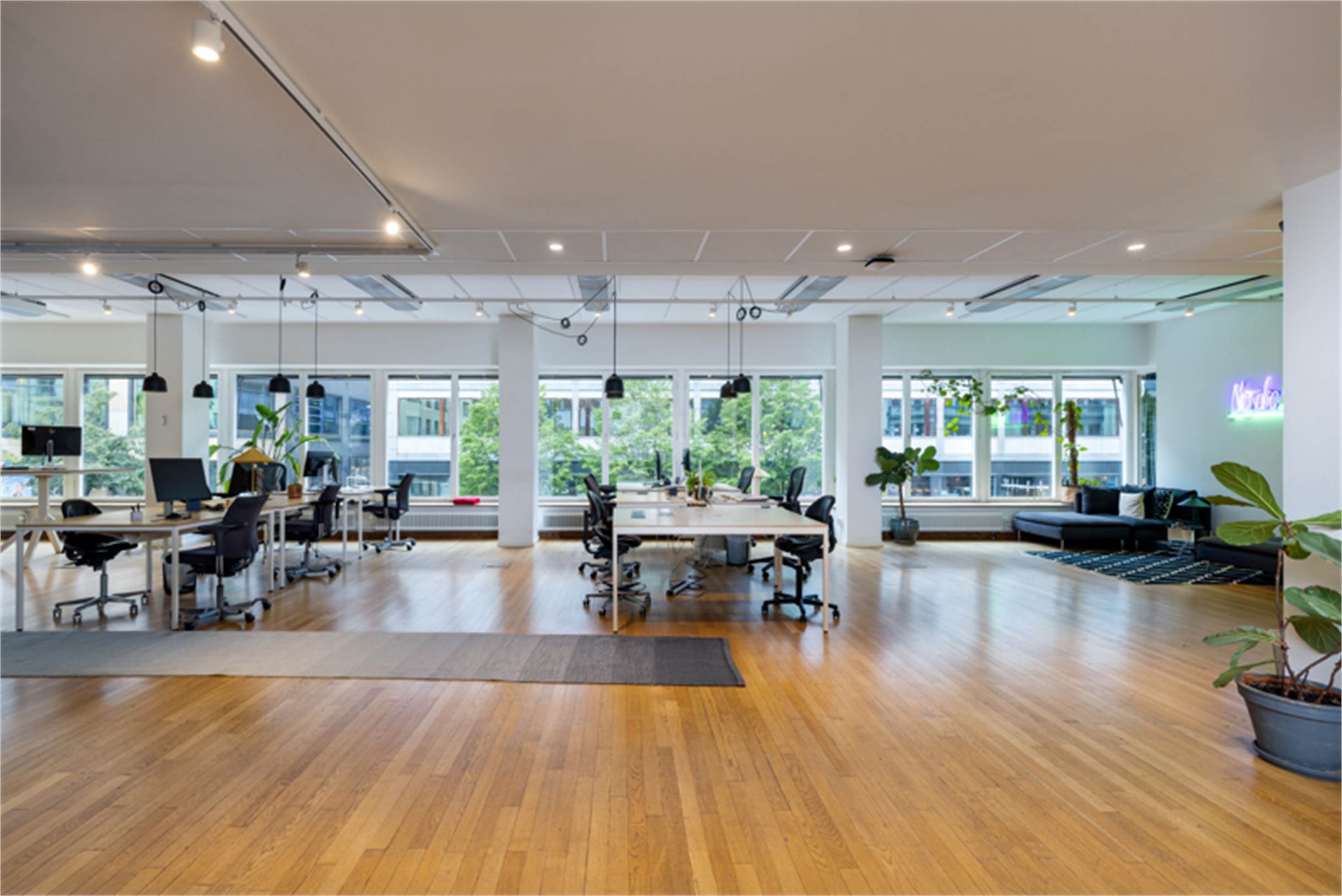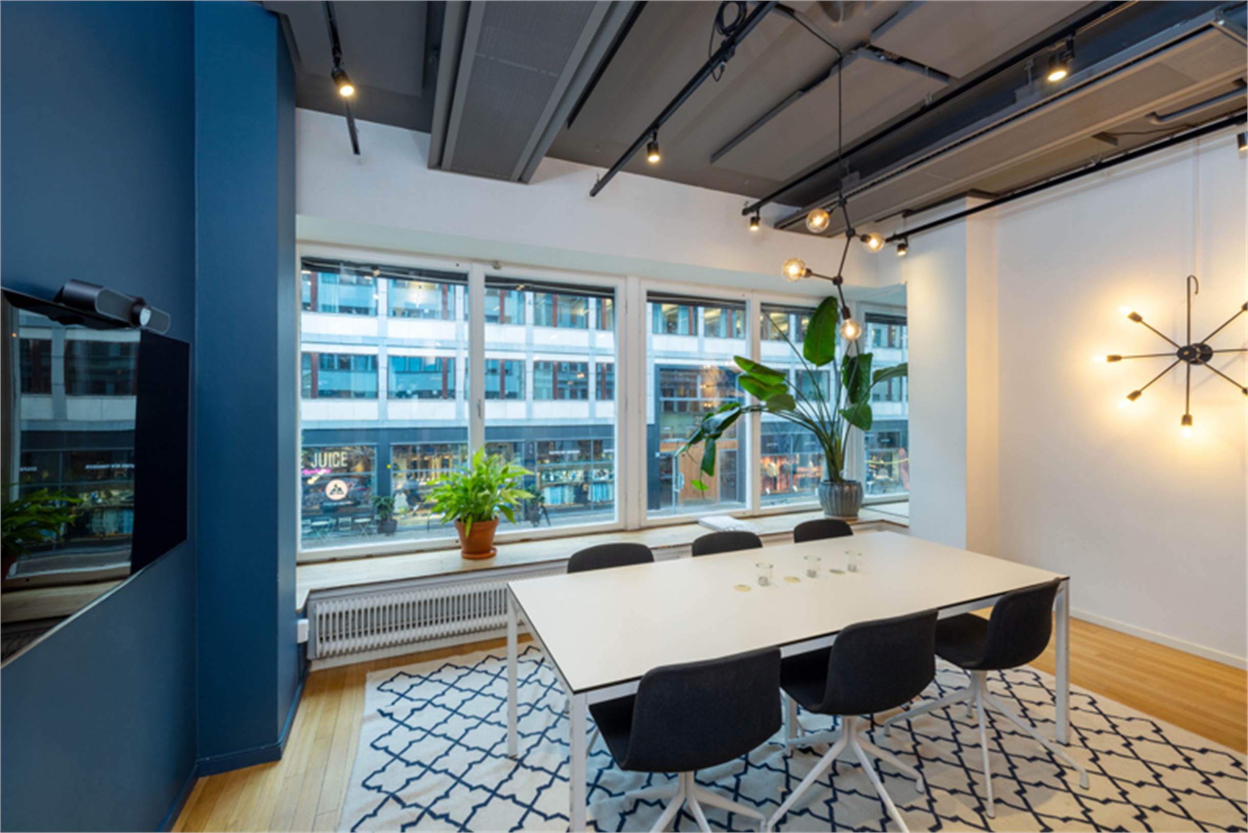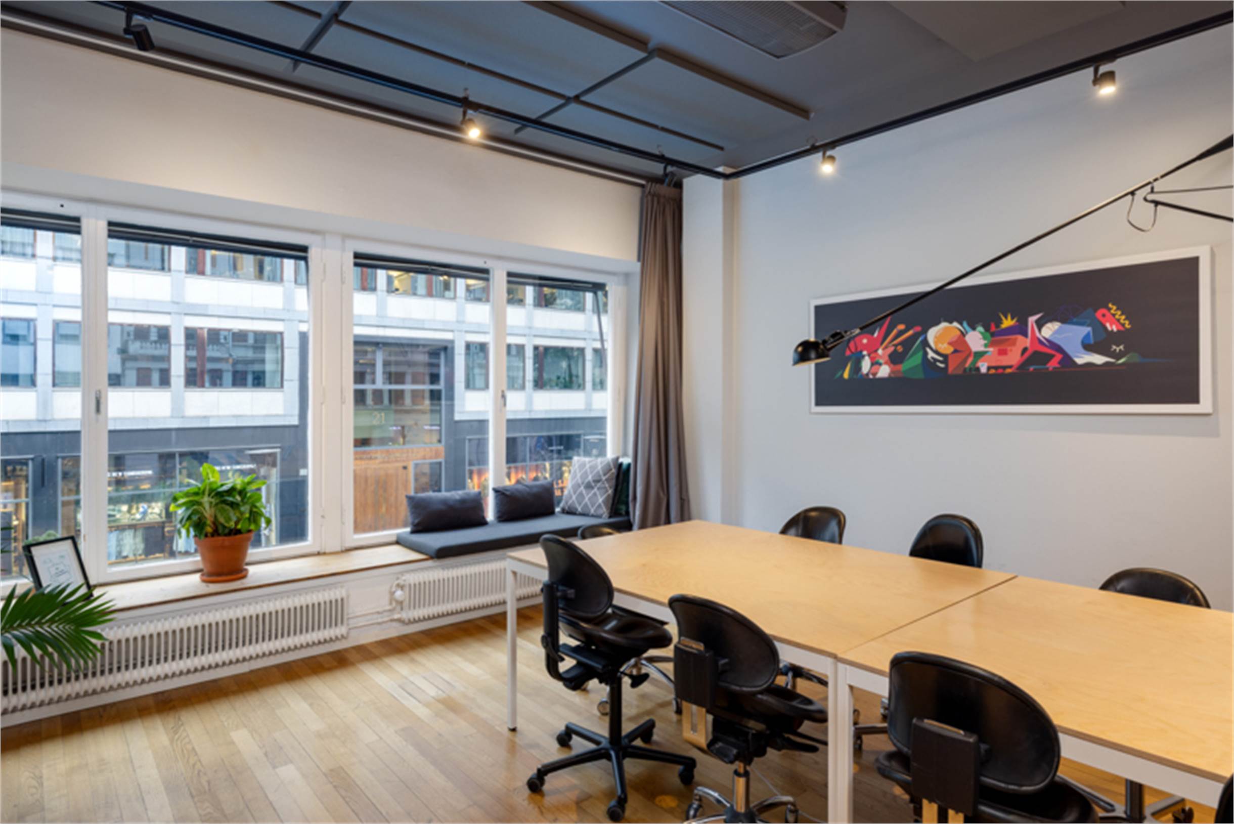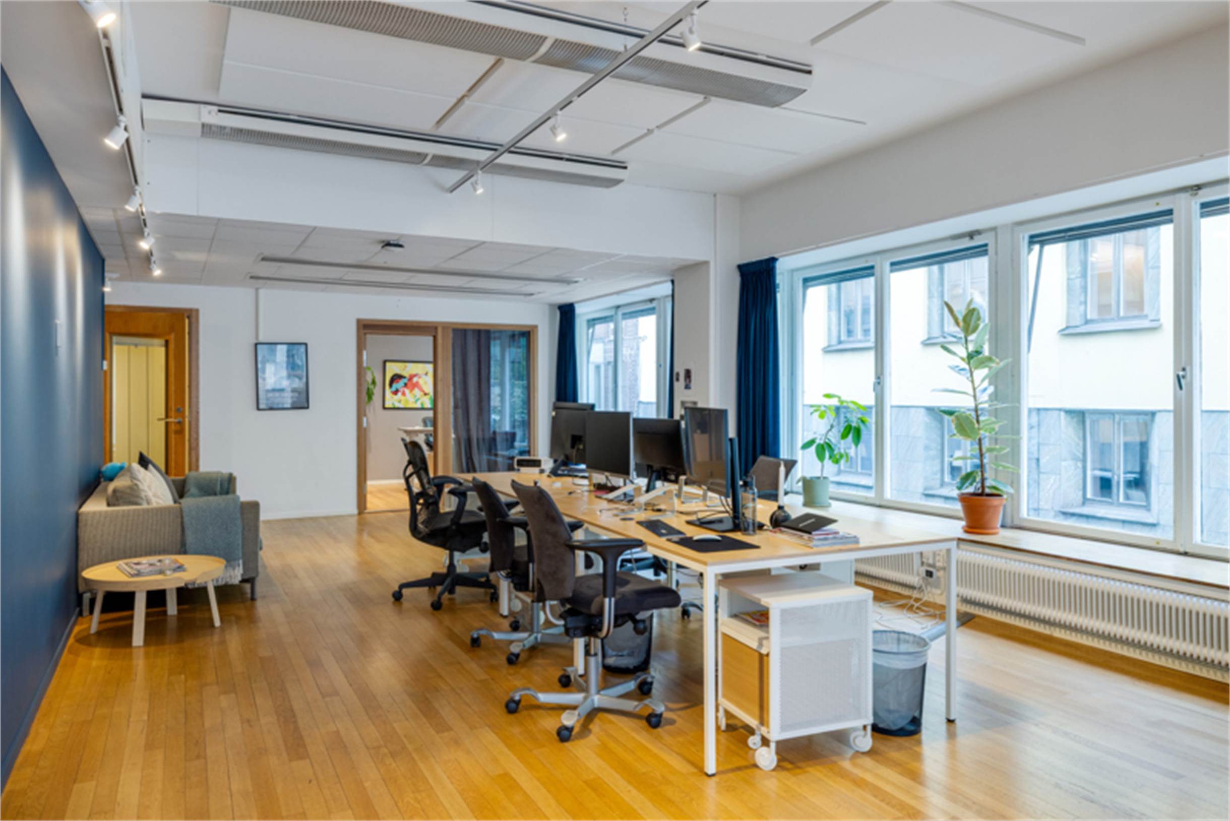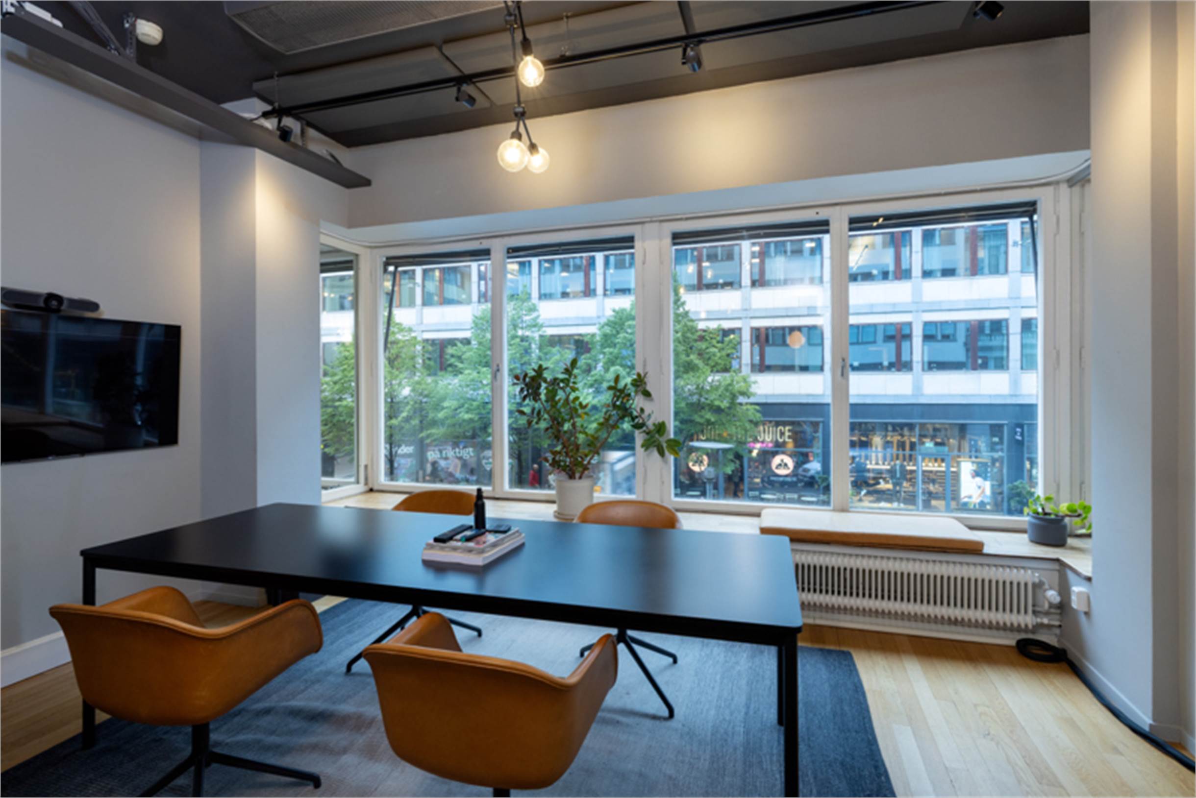 Kontoret ligger utmed Norrlandsgatan och Jakobsbergsgatan, med ett härligt ljusinsläpp runtom hela kontoret. Flertal konferensrum och mindre mötesrum utplacerade runt de öppna arbetslandskapen och en större loungeyta med riktigt kök för matlagning som man kan stänga till. Väl valda materialval och en genomtänkt planlösning som skapar en trivsam och inspirerande arbetsmiljö och representativ känsla.